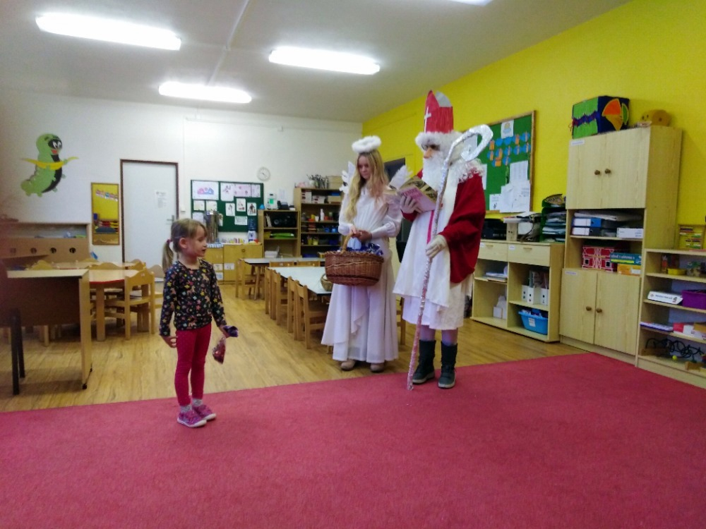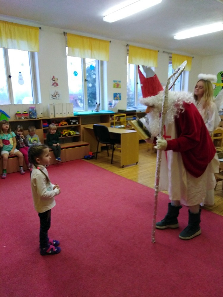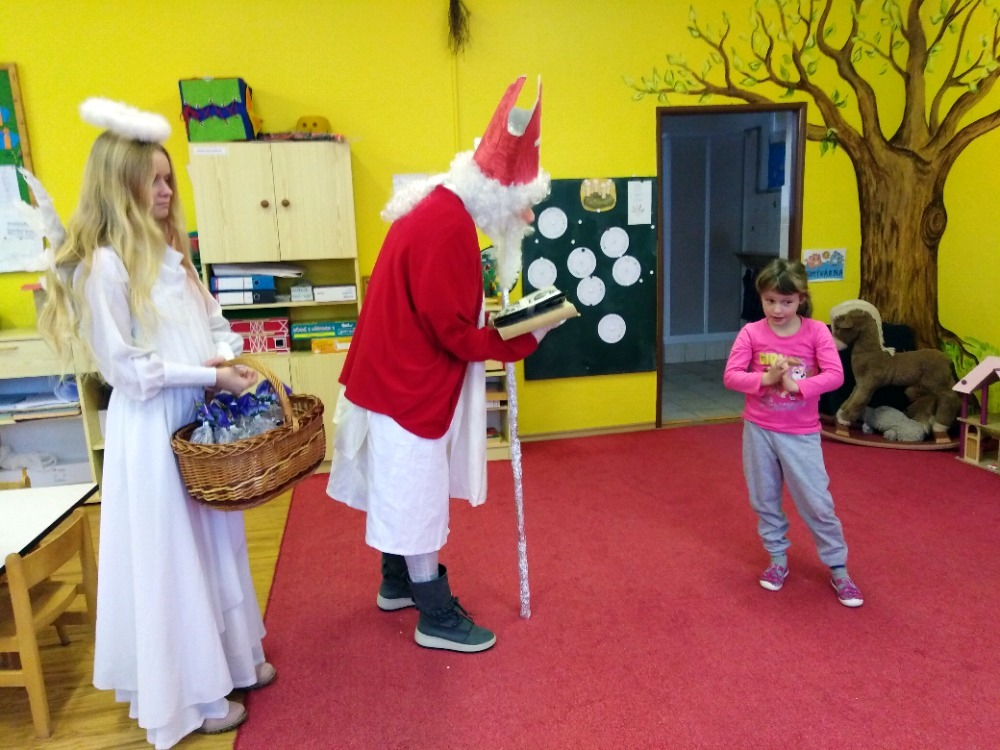 Ve školce nás navštívil Mikuláš s andělem. Děti jim za nadílku poděkovaly krátkým vystoupením.
