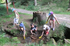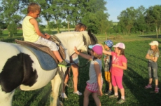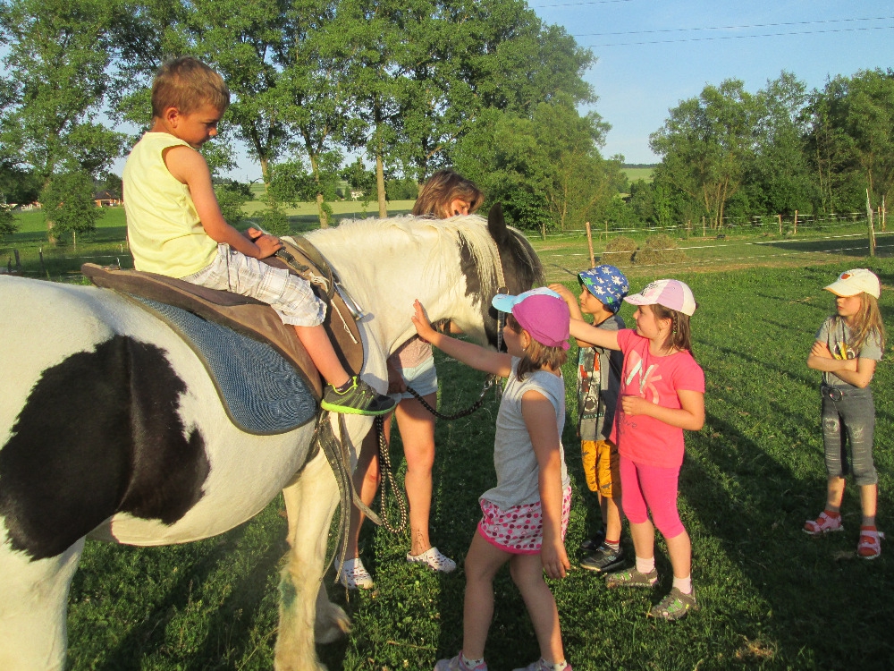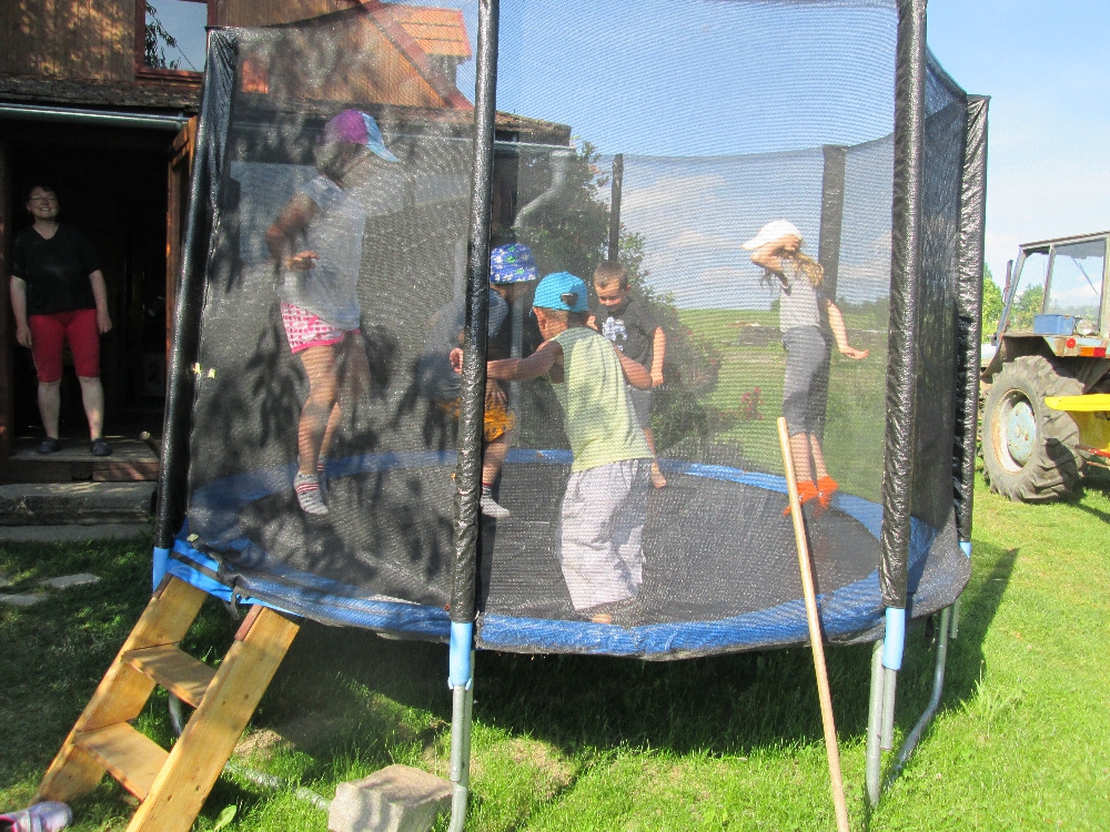 Po odchodu mladších dětí jsme navštívili muzeum, kde jsme si prohlédli papírové modely. Následně nás autobus odvezl na Slavný, kde si děti zadováděly na trampolíně, pohrály si s koťátky a podívaly se i na Krkonoše. Cestou lesem jsme došli k Lomečku, kde si děti hrály s lopatkami u potůčku. Ze Suchodola jsme jeli autobusem do Police, kde nás čekala paní Rubáčková, která děti povozila na svém koníkovi. Rychle jsme snědli večeři a těšili se na stezku odvahy. Po pohádce děti spaly až do rána. Po snídani se zapojily do her s ostatními dětmi.