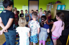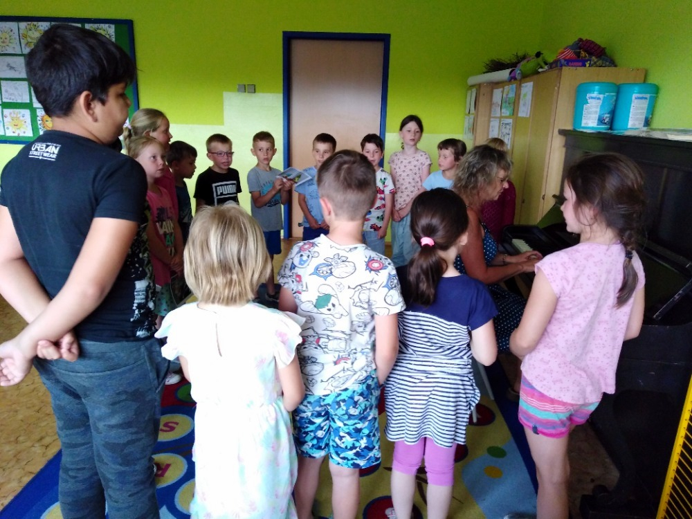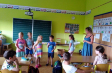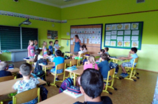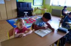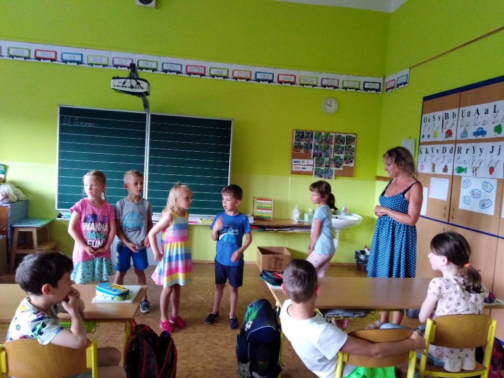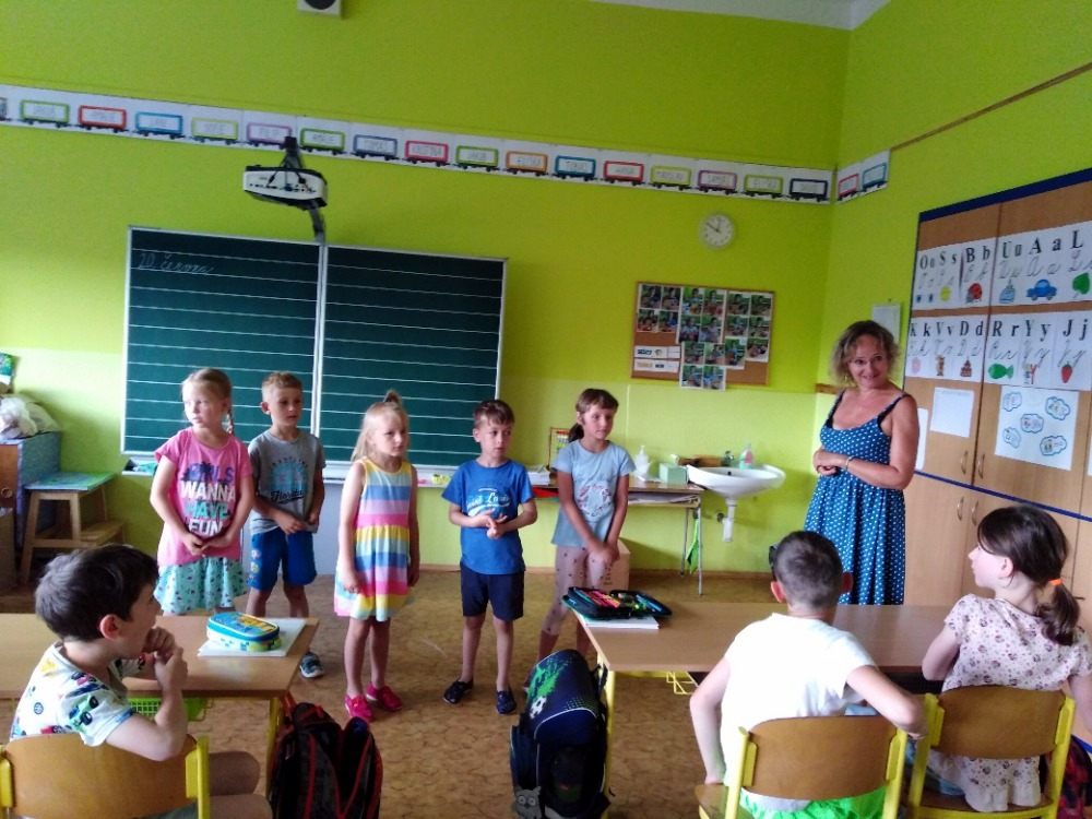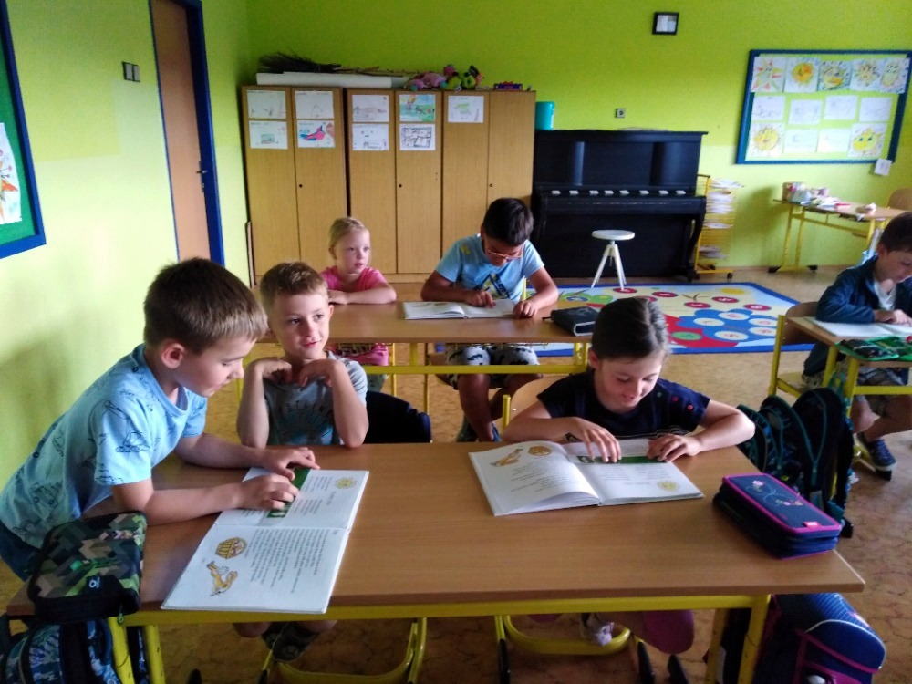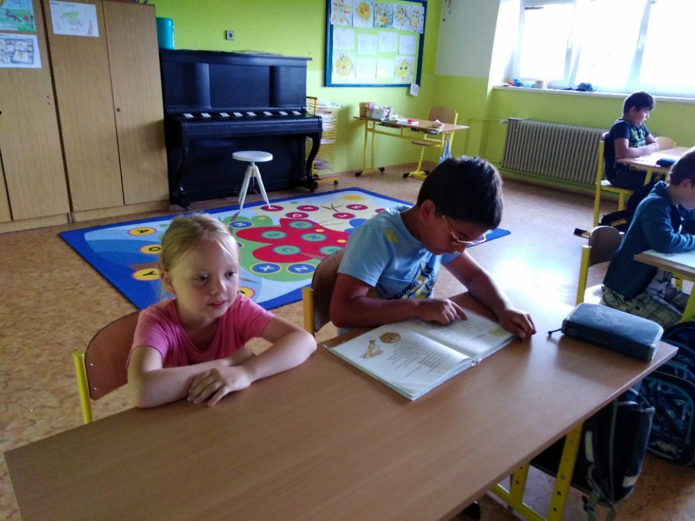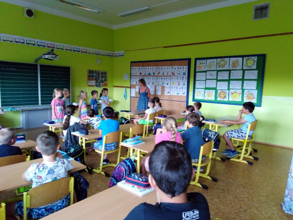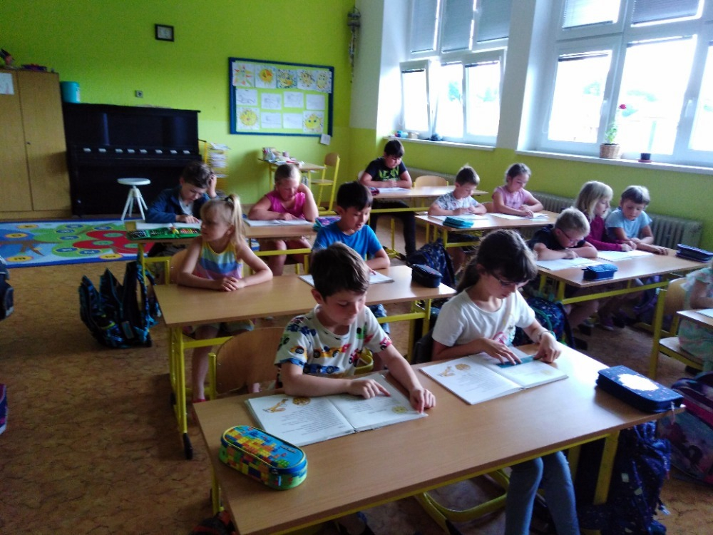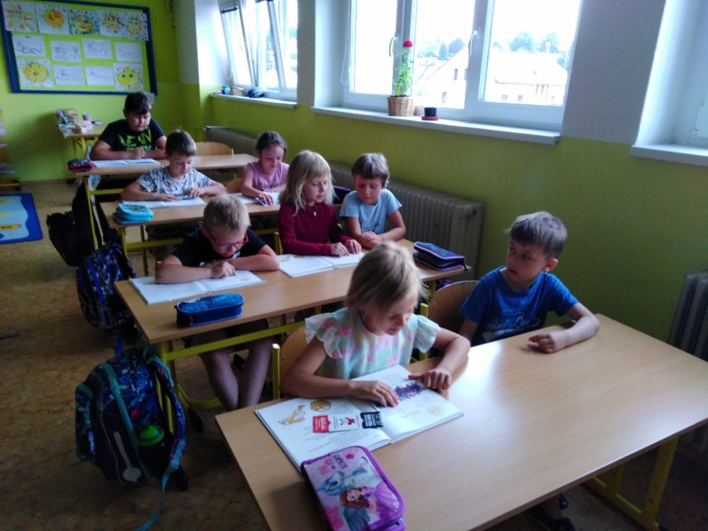 Našich pět předškoláčků mělo možnost prohlédnout si školu a nahlédnout do prvních a druhých tříd. Nejvíce času jsme strávili ve třídě 1. B. Děti nám ukázaly, jak už umí číst, společně jsme si zazpívali a poznávali písmenka. Děkujeme paní učitelce Pátkové za připravený program.