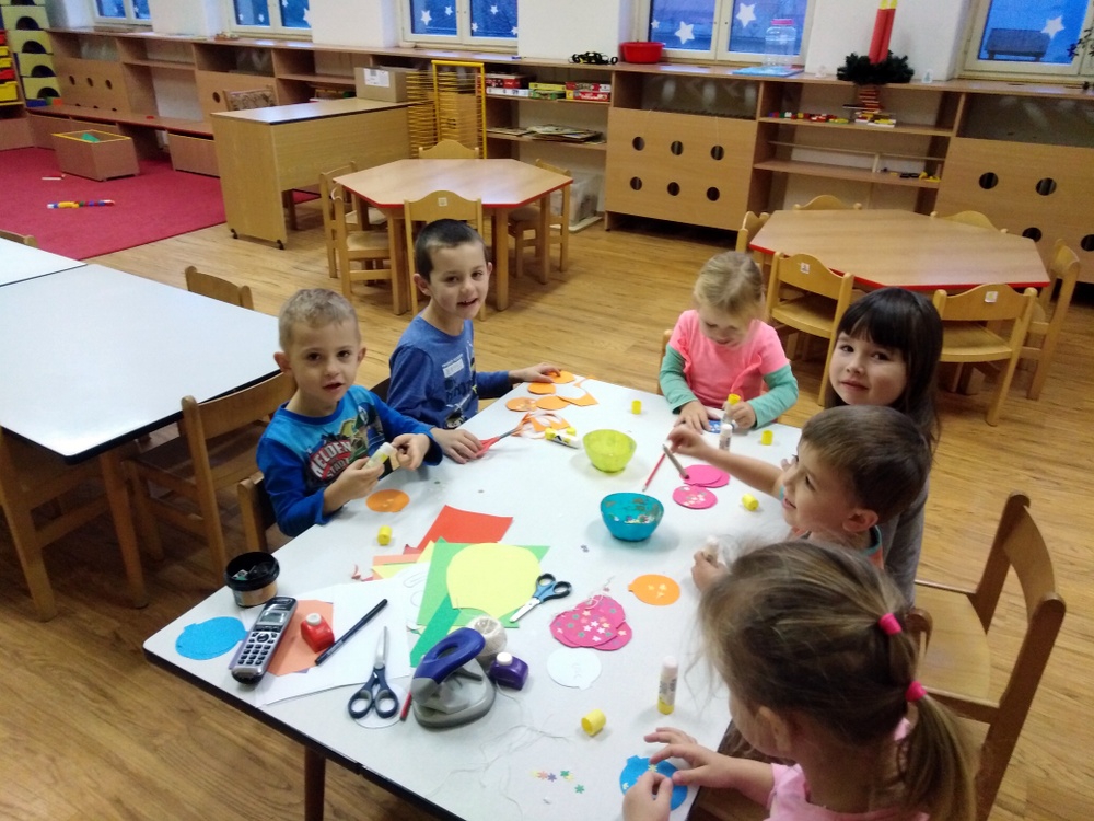 Adventní období jsme si zpříjemnili spoustou vánočních aktivit, jako je třeba: výroba čertích řetězů, výroba vánočních přáníček, poslech vánočních koled, zdobení stromečku, ... Každý den se děti těšily na adventní kalendář, který dětem názorně ukázal zbývající čas do Vánoc.