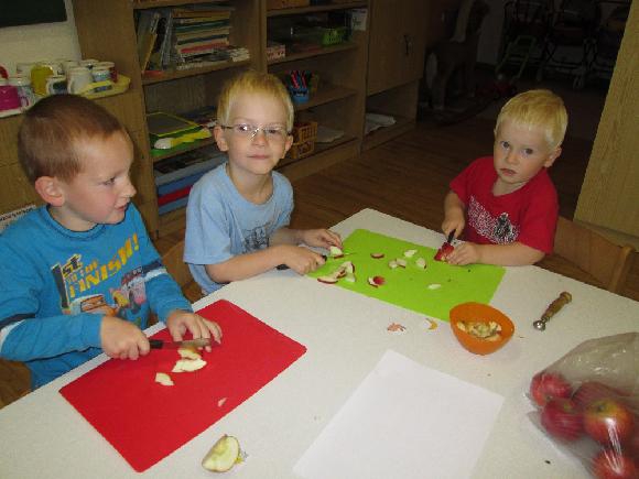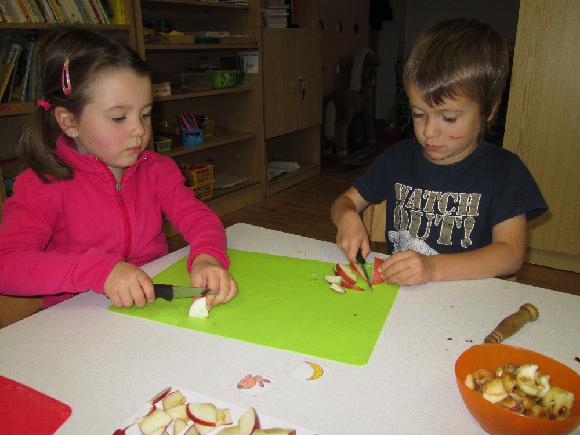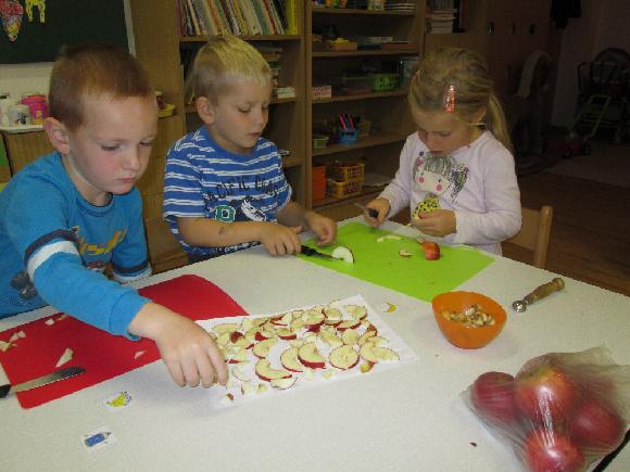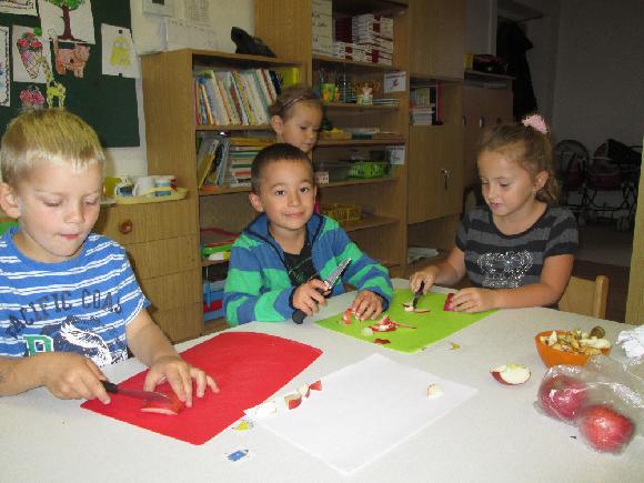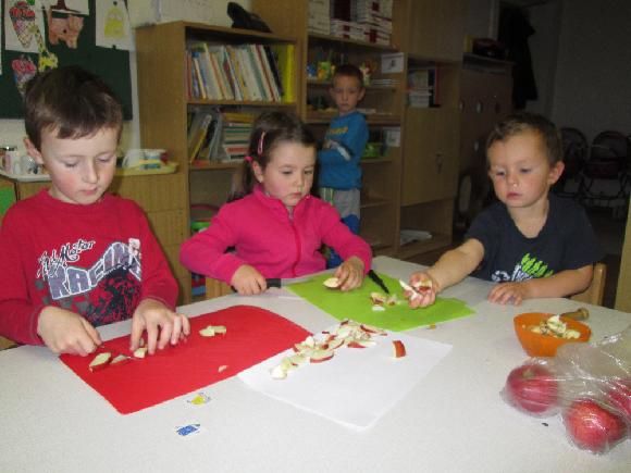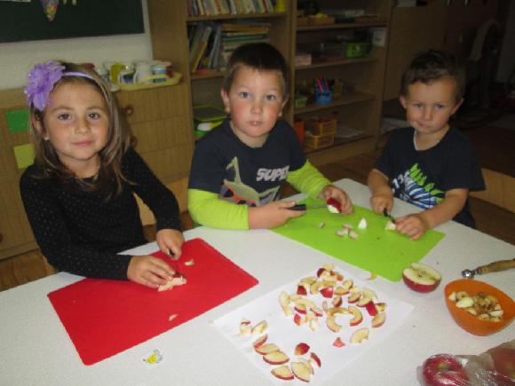 V říjnu jsme si vyprávěli o podzimních plodech. Moc nám chutnaly křížaly, které jsme si ve školce vyráběli.