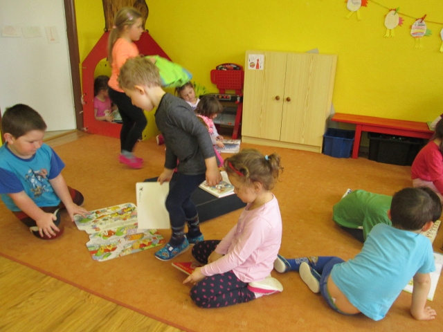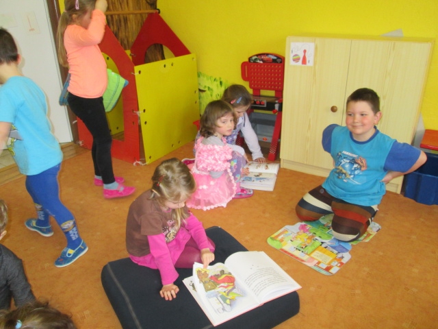 V březnu si děti přinesly do školky svoji oblíbenou knížku, o které ostatním dětem vyprávěly. Připomněly si, jak se s knihami zachází, prohlížely si ilustrace a každý den jsme si z těchto knih četli.