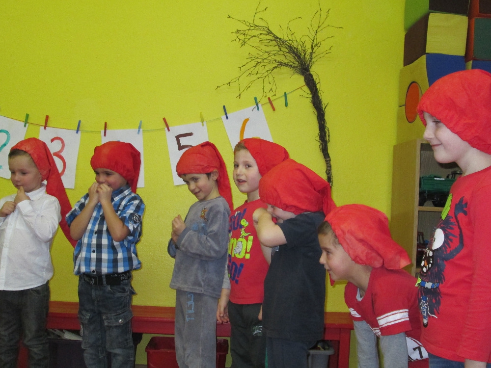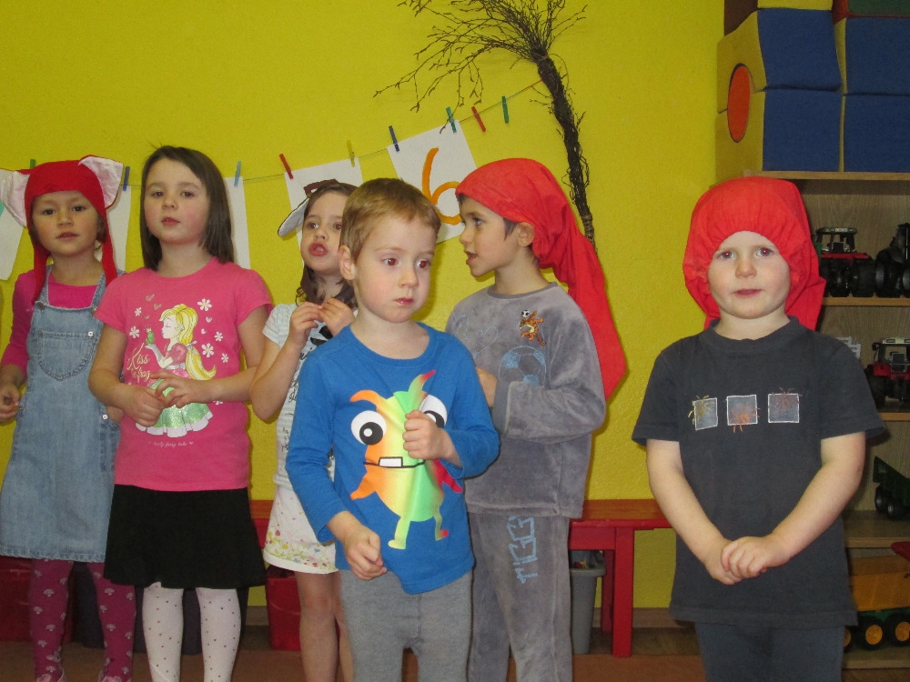 Malé děti si připravily pohádku O veliké řepě a ti starší Sněhurku a sedm trpaslíků. V úterý 21. prosince dopoledne jsme si celý program besídky zopakovali a těšili se, jak odpoledne rodičům předvedeme, co jsme si pro ně připravili. Netušili jsme ale, co dokáže velký počet diváků a tréma. Malé děti začaly plakat a postupně odbíhaly k rodičům. Pohádku O veliké řepě zahrály pouze čtyři malé děti. Ale vše nakonec dobře dopadlo a děti se radovaly z potlesku všech přítomných.