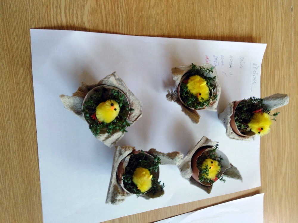 Děti se seznámily s tradicí a symboly Velikonoc. Seli jsme řeřichu a obilíčko, zdobili vejdunky, pekli jidášky... Činností bylo plno. Chlapci se naučili velikonoční koledu, aby holčičky v pondělí mohli vyšlehat a dostat malované vajíčko.