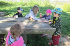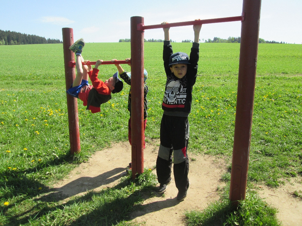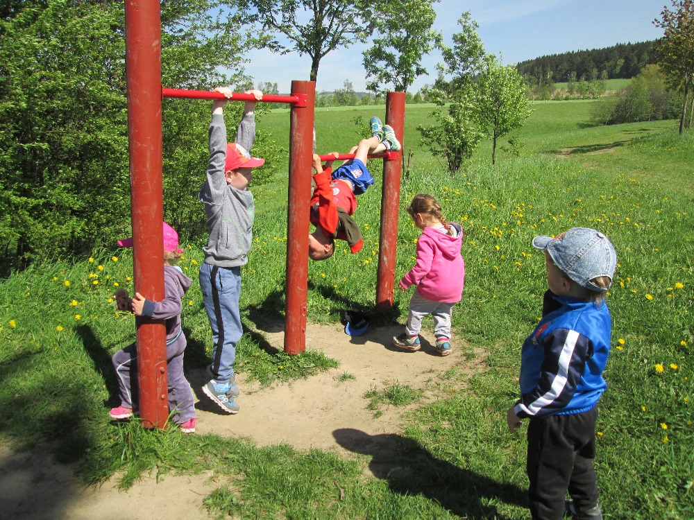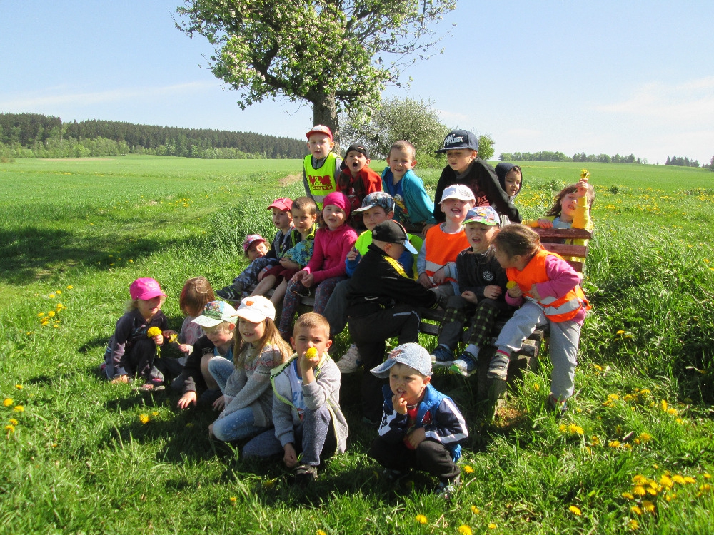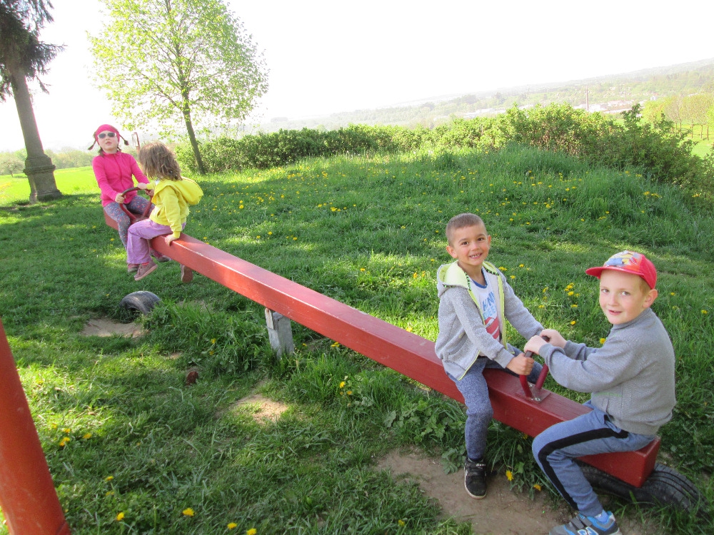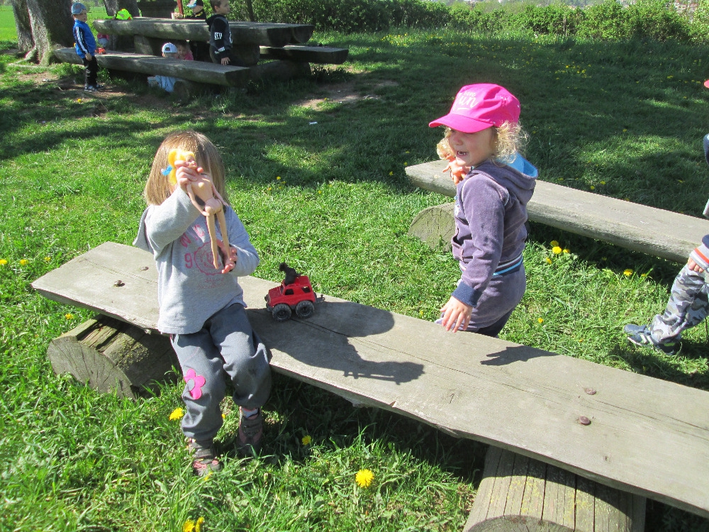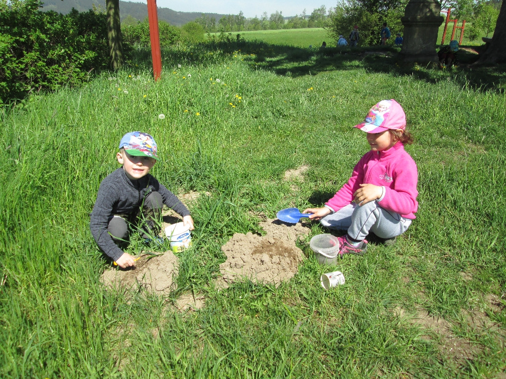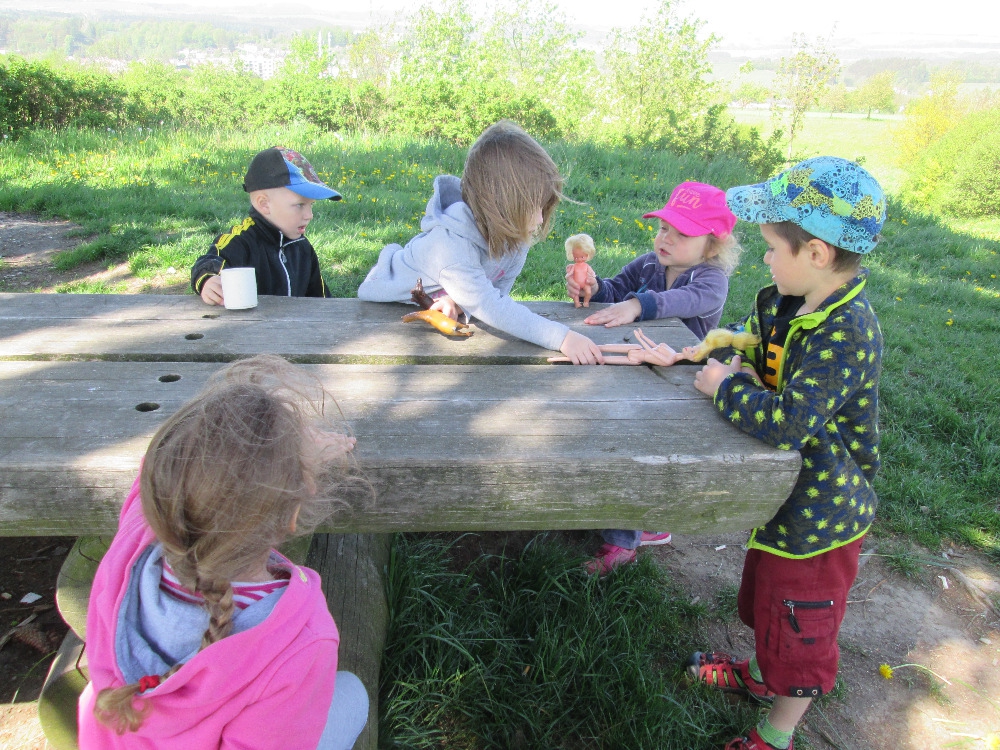 Několikrát jsme byli u Cikánky a došli jsme i k Soudní bráně u kapličky v Suchém Dolu. Hráli jsme si s přírodninami i s donesenými hračkami. U oběda nám pak vždycky moc chutnalo.