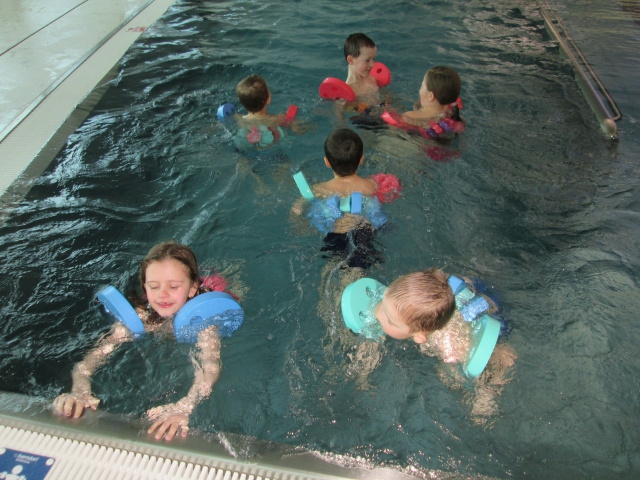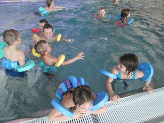 Z naší školky se přihlásilo 20 dětí. Jezdíme mikrobusem, do kterého nastoupíme u školky a odveze nás až ke vstupu do bazénu. Děti se seznámily s pravidly a už se těšily do vody. Část vyuky si užily i ve výřivce.