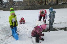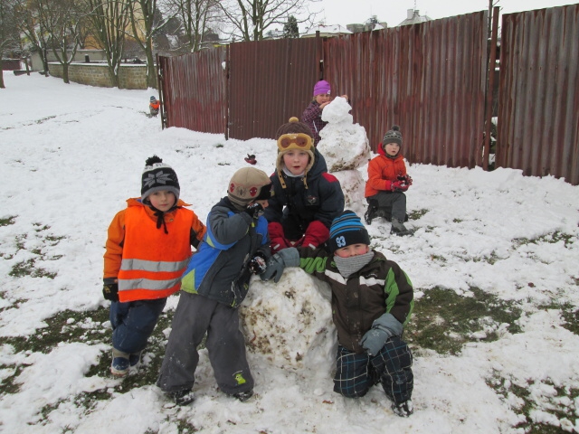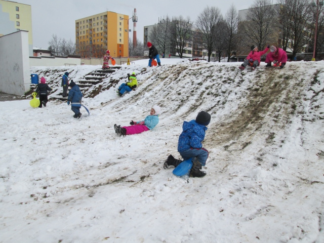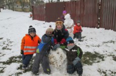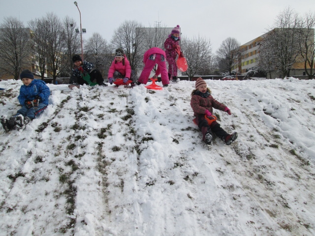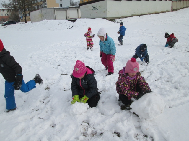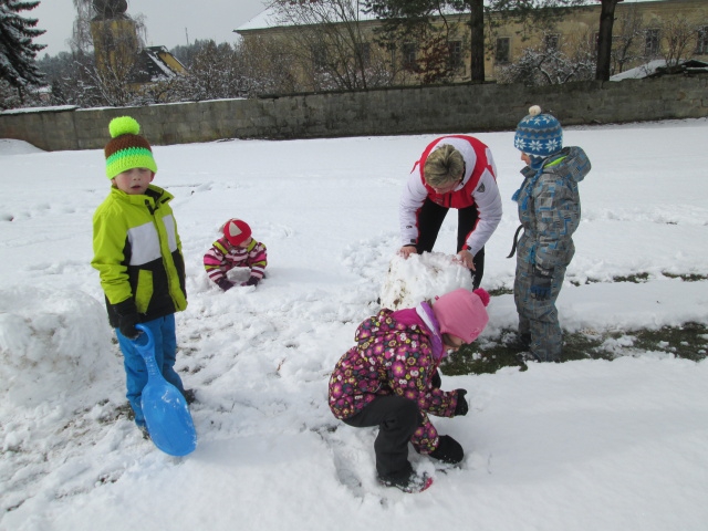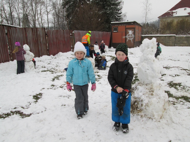 I když byla letošní zima na příděl sněhu skoupá, využívali jsme každé sněhové nadílky a hráli si se sněhem. Jezdili jsme na kluzácích, koulovali se, vyšlapávali cesty ve sněhu a tvarovali sněhuláky.