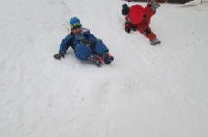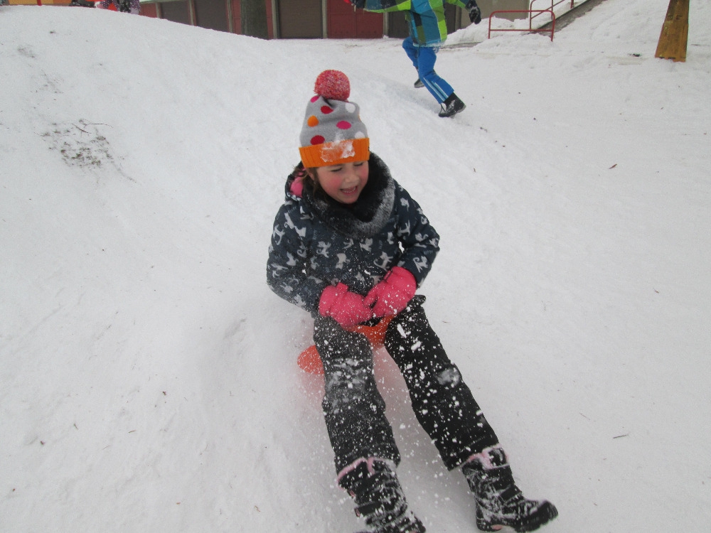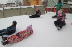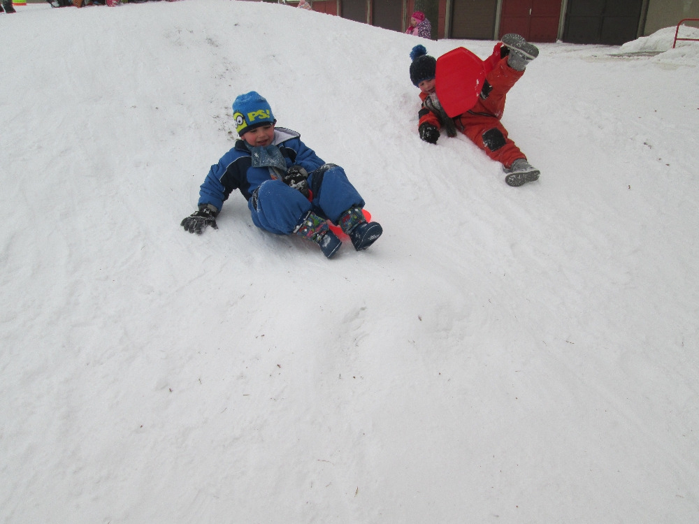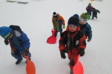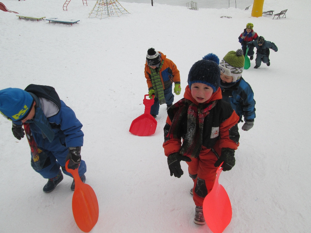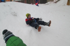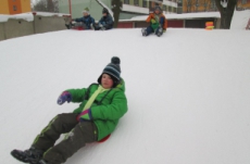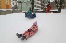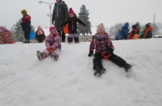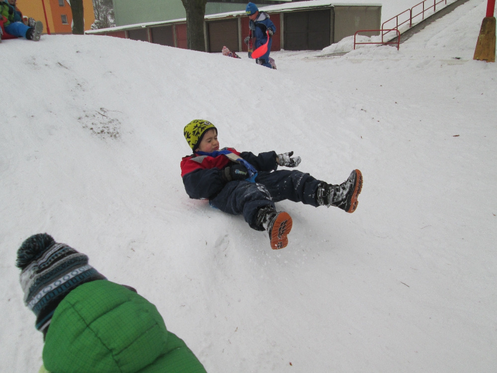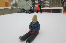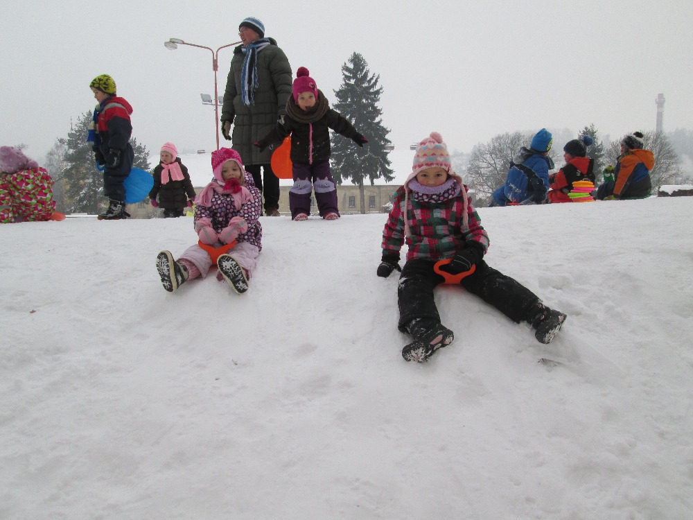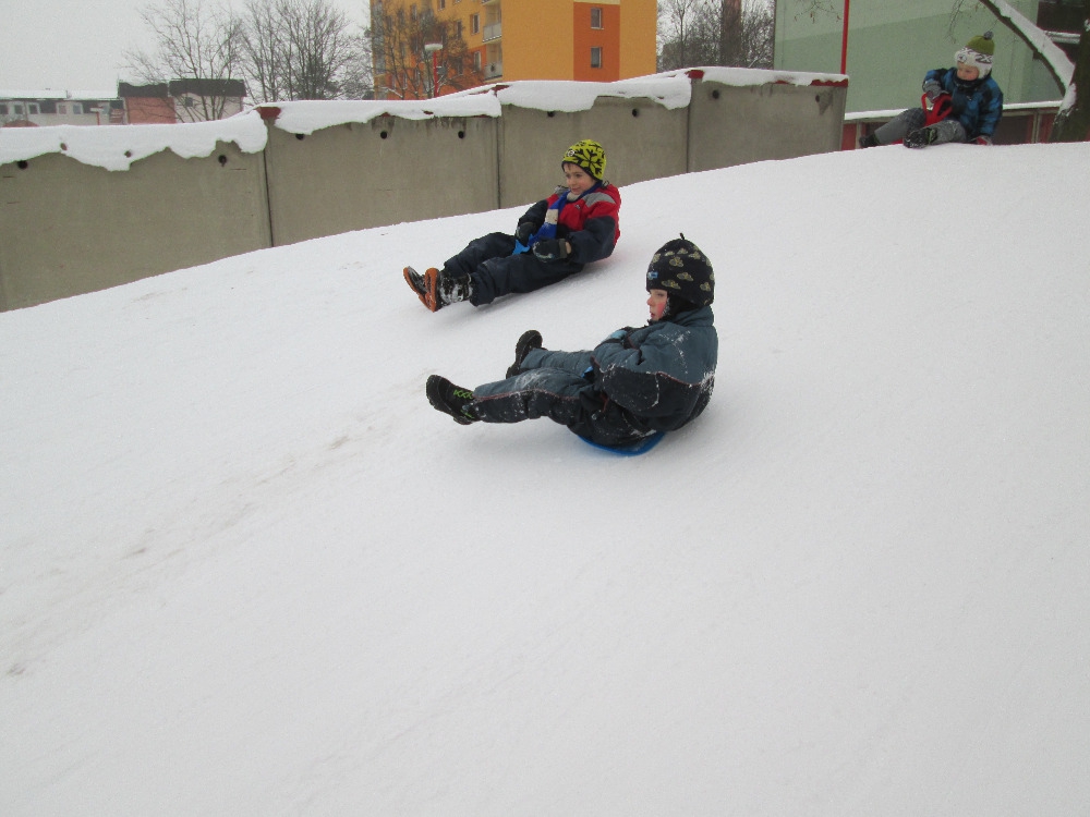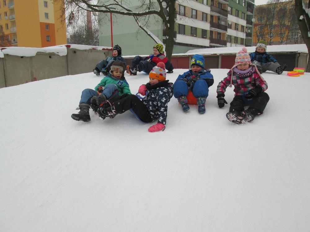 Konečně jsme se dočkali sněhové nadílky. Chodíme s dětmi jezdit na plastových lopatách, tvoříme stavby ze sněhu, vyšlapujeme obrazy a cesty ve sněhu.