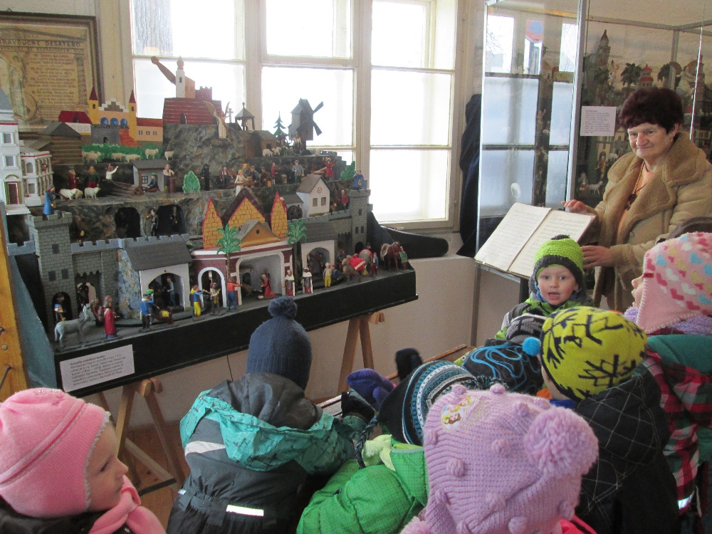 Mysleli jsme i na lesní zvířátka a ustrojili jsme jim u krmelce stromeček s dobrotami. Po Vánocích jsme navštívili výstavu betlémů v muzeu. Také jsme si byli prohlédnout krásnou výzdobu kostela a betlém.