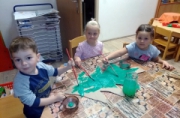 Ve dvou listopadových týdnech jsme se věnovali tématu povolání – „Ten dělá to a ten zas tohle“, děti si vyzkoušely různá povolání prostřednictvím námětových her. Na doktora, na automechanika, stavitele, cukráře, závozníka apod. Zkoušely si upéct z vizovického těsta housky a vánočky, navrhovaly svoje vlastní košilky a trička, tvořily dortíky z kinetického písku, stavěly silnice, domy a vyzkoušely si, jak se odlívá beton.