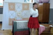V úterý 2.4. k nám přijela z Červené Skalice paní Hrušková s pohádkou Sůl nad zlato. Paní Hrušková přivezla s sebou krásné dřevěné loutky a hezké písničky. Děti byly často zapojeny do děje – vařily polévku, řízky, pomáhaly utěšit Marušku, když ji král vyhnal ze zámku,..