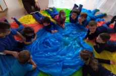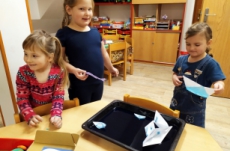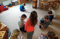 Zelený den se nesl ve znamení žab -vytvořili jsme si žabí království a největší úspěch bezesporu sklidil den červený, kde jsme si upekli malé muffínky a zavítali k Červené Karkulce. Ve žlutém dni bylo ve třídě plno sluníček a také si děti pohrály se stínem a světlem. Týden jsme završili barevným pokusem s mlékem a potravinářskými barvami. Byl to barevně užitý týdenJ