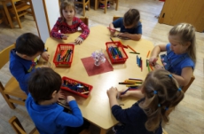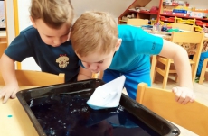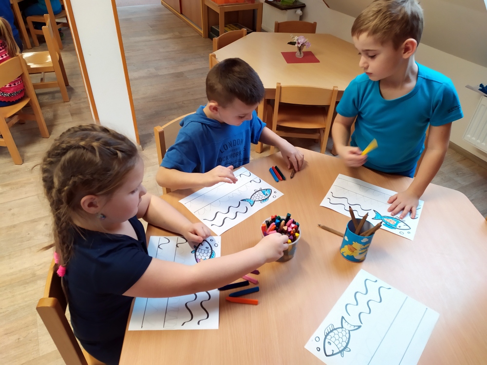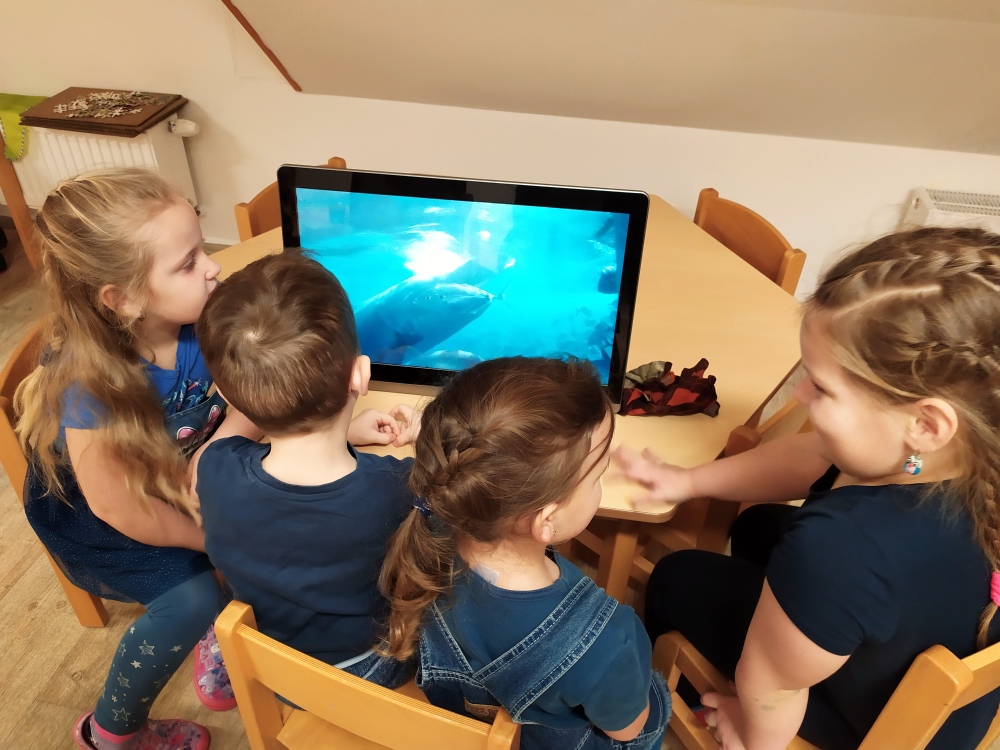 V tomto týdnu se děti seznamovaly s barvami – každý den jsme se scházeli v jiné barvě a děti mohly plnit barevné úkoly dne, které spočívaly ve spočítání nebo nalezení něčeho, čemu jsme se daný den věnovali. V modrém dni děti nejvíce zaujalo pozorování žraloků a různých ryb.