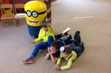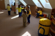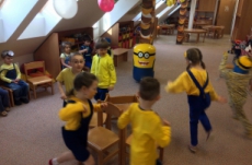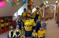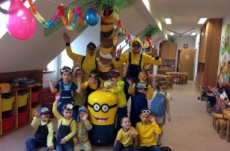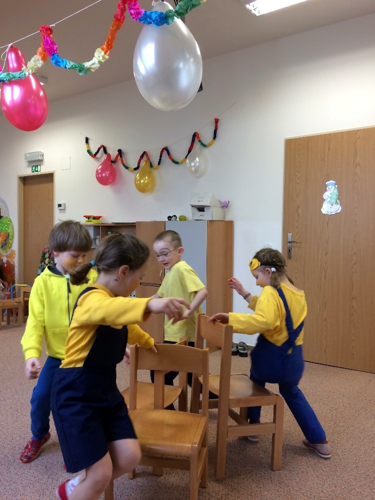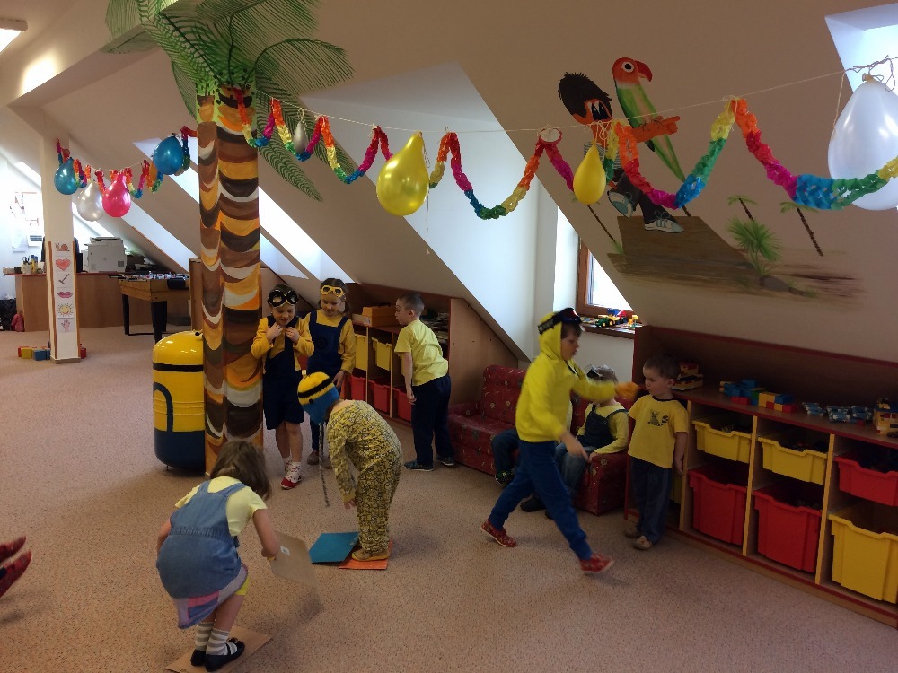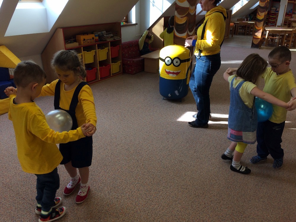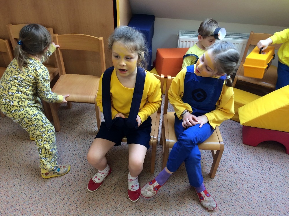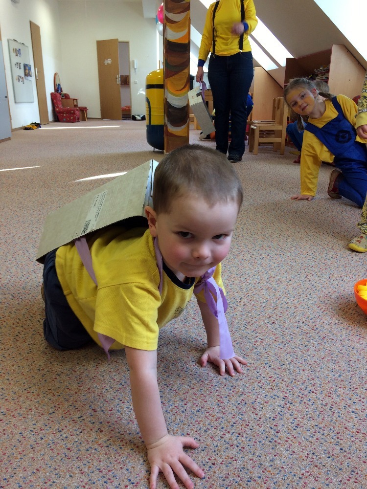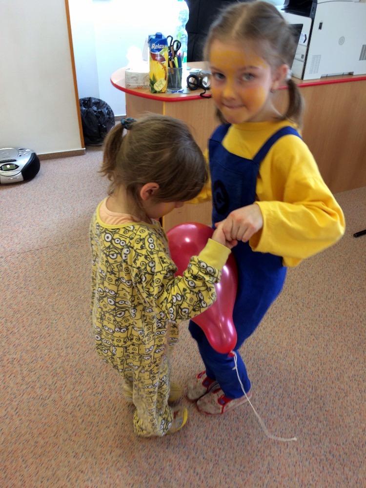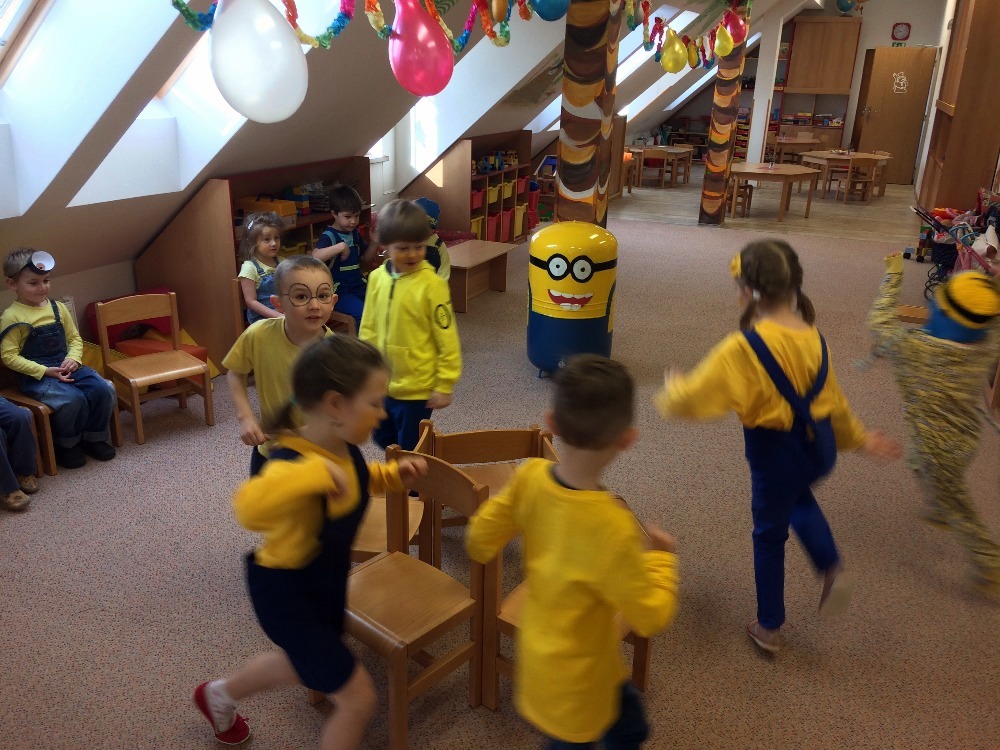 no prostě mimoňský karneval J Udělali jsme si přehlídku masek, soutěžili jsme v různých disciplínách, naplno se tančilo, luštili jsme večerníčkový kvíz a nakonec všichni mimoni dostali sladkou odměnu, balónek  a veselou „frkačku“.