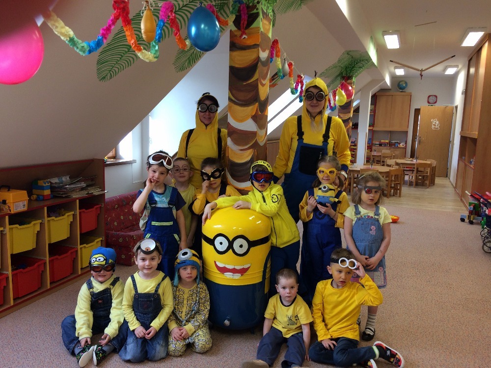 Tento rok jsme měli na Petrovicích karneval na téma mimoni. Navštívili nás různá žlutomodrá stvoření – jednooký, dvouoký, malý, vysoký, plyšový, v kalhotách, v šatičkách, …