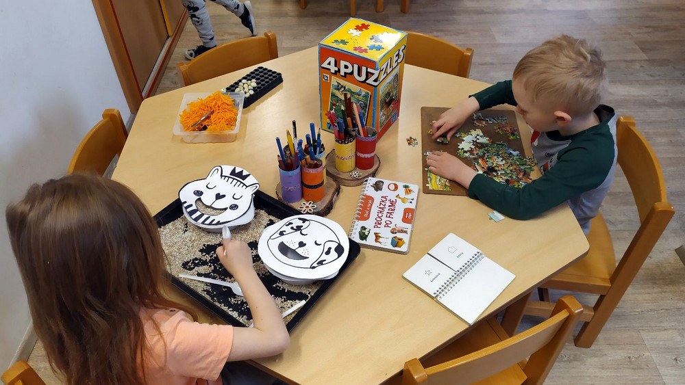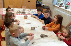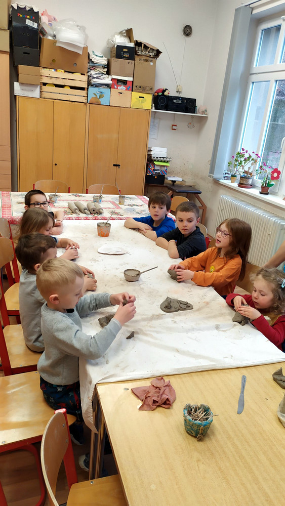 Po horolezeckém zážitku si děti mohly vytvořit malý dáreček z keramiky pro své maminky, které budou mít v květnu svátek. Také se děti seznamovaly s mláďátky – s jejich názvy i zvuky. Společně jsme si zkusili zahrát pohádku „O koťátku, které zapomnělo mňoukat“. Děti si také mohly vytvořit zpěvník na písničku „Když jsem já sloužil…“