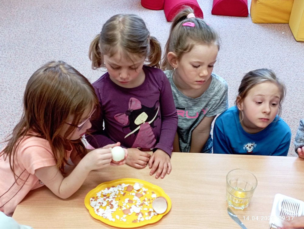 Nastal nám čas velikonočních svátků a s ním i veselé tvoření ze skořápek. Děti si oprášily říkanky, které jistě využily při koledě.