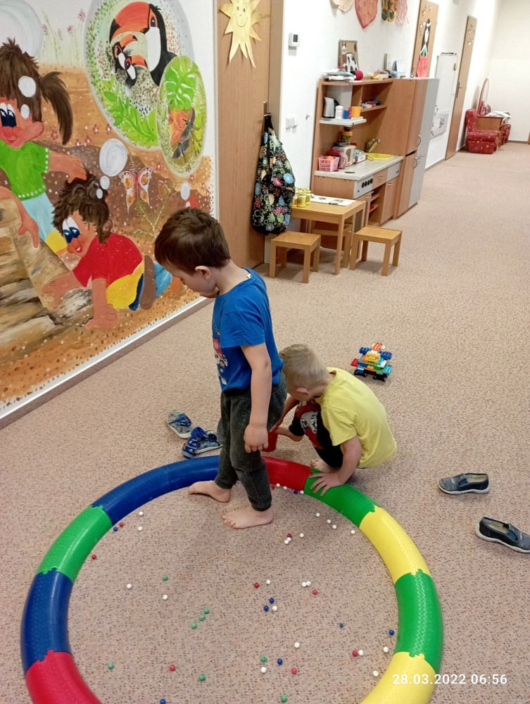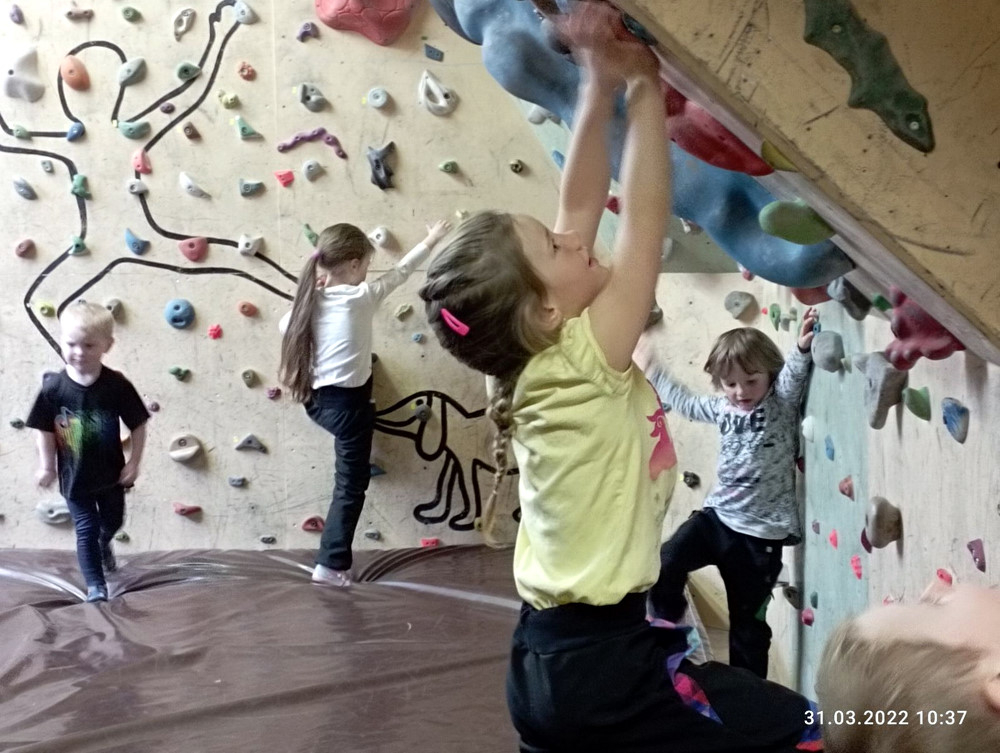 Duben nám přinesl opět nová témata a s ním i spousta zábavy. Děti si povídaly o jaru, na procházkách poznávaly první jarní květiny. Společně jsme vyrazili do Hronova na boulderovou stěnu do Domina.