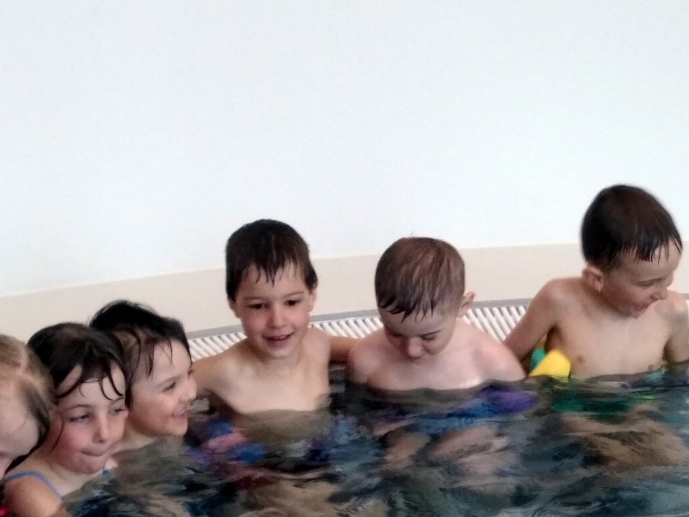 V pátek 12.4.2019 začal plavecký výcvik v Broumově. Z naší školky jezdí kromě nejmenších chlapců všechny děti. Jezdíme společně s předškoláky z Bezděkova. Celkem pojedeme 10x, poslední lekce proběhne 21.6. Na první lekci byly děti rozděleny do dvou skupin.