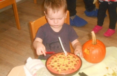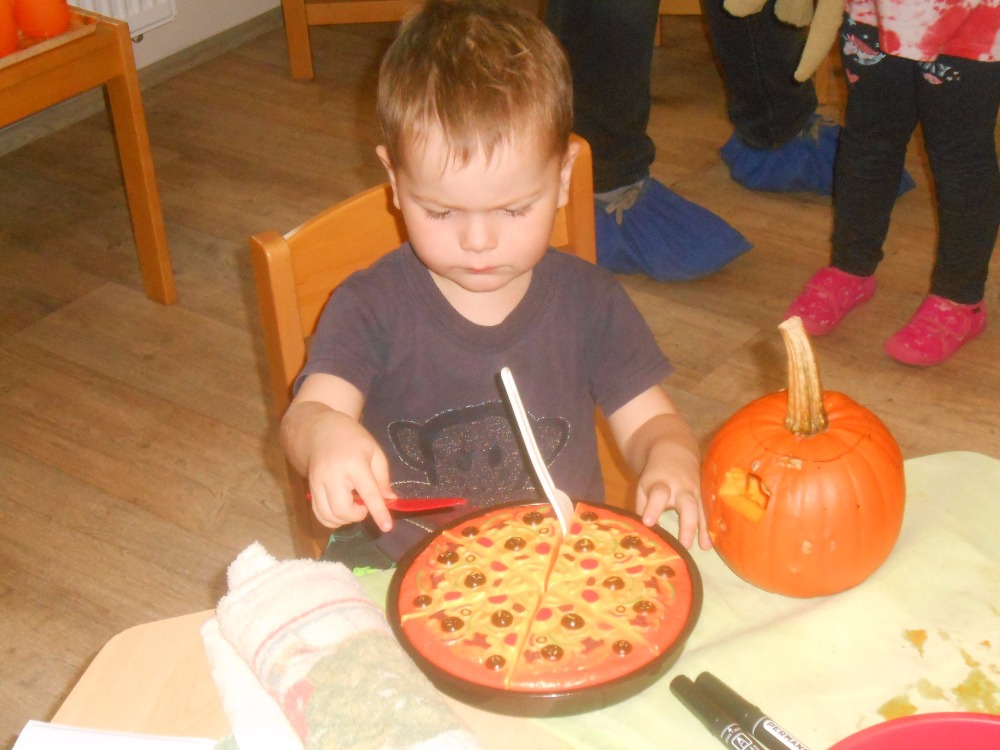 Vydlabali jsme si různé druhy dýní. Děti za odměnu dostaly malého sladkého ducha.