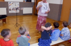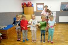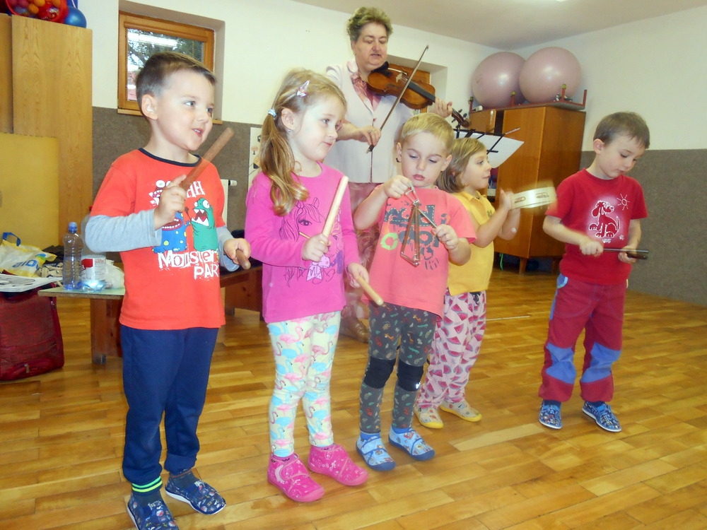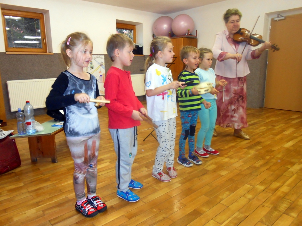 Zaposlouchali jsme se do písniček z pohádek Svěráka a Uhlíře. Děti znaly celou řadu písniček, společně jsme si zazpívali Dělání, Statistika, Není nutno, Zdravý pramen z Posázaví,.. Děti doprovázely zpěv a hru na housle rytmickými nástroji.