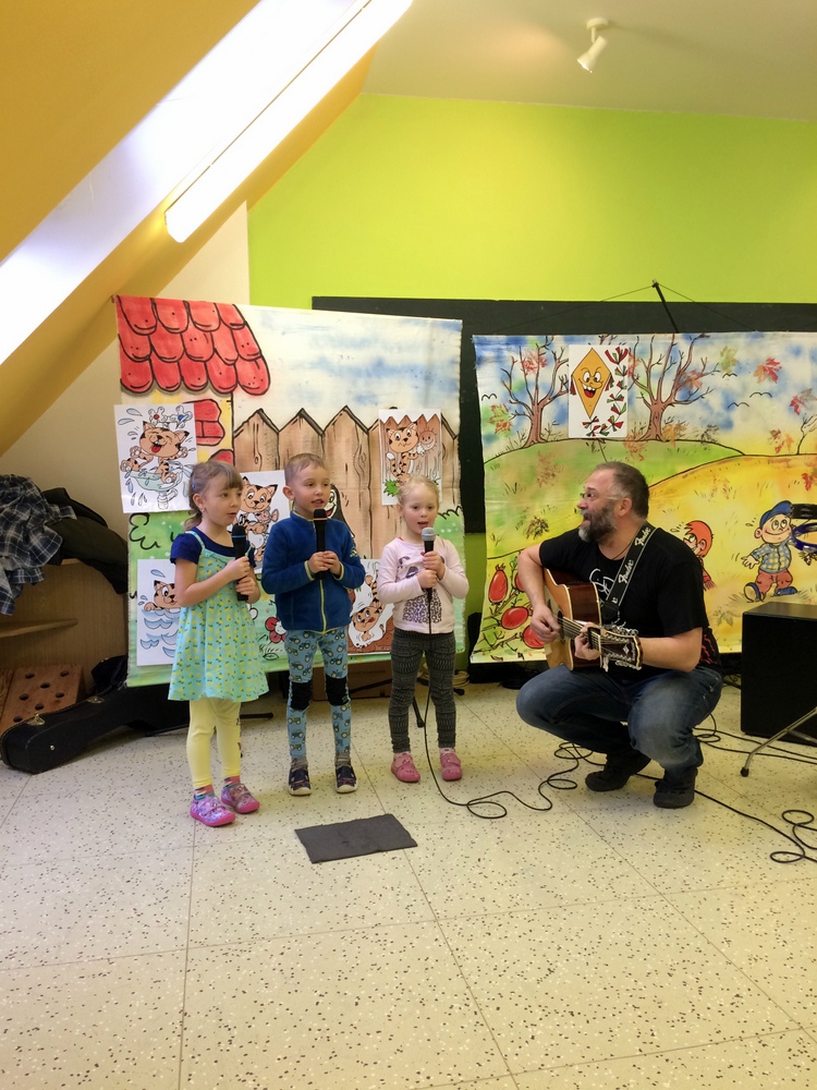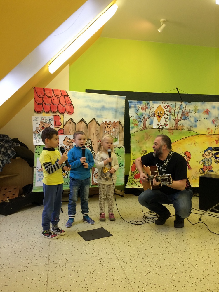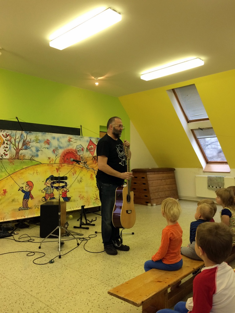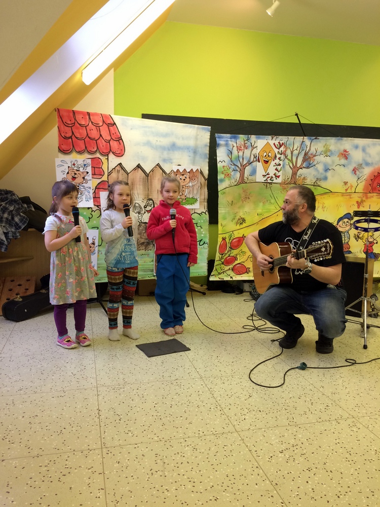 V úterý 28.11.2017 jsme se vydali na Bezděkov na hudební vystoupení. Děti se seznámily s hrou na kytaru. Některé děti si vyzkoušely zpívat do mikrofonu. Společně jsme si zazpívali známé české písničky.