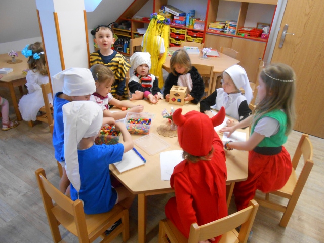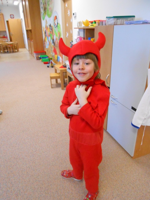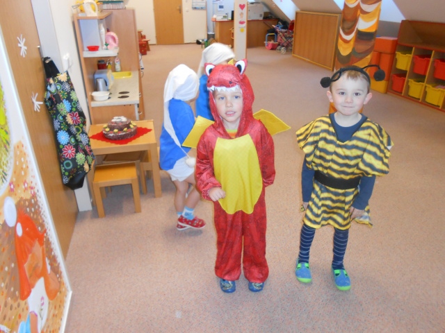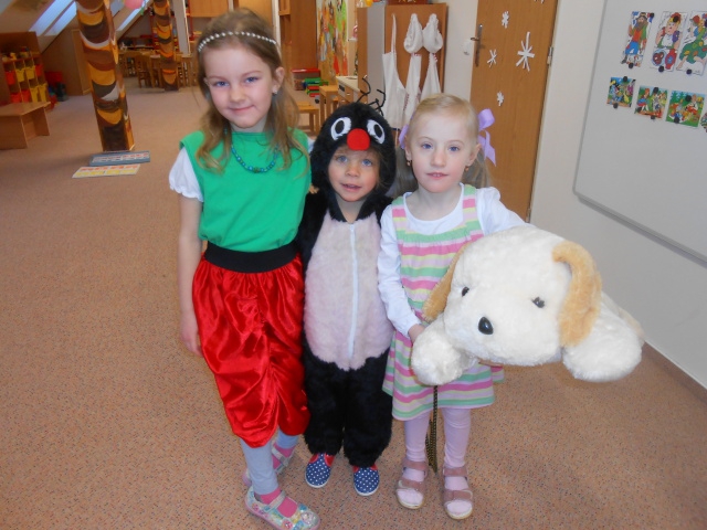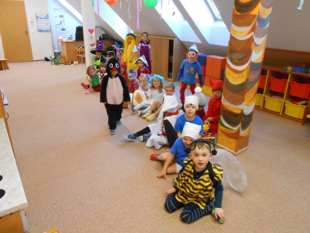 Ráno nám do školky přicházely víly Amálky, Maková panenka, Hurvínek, Ája s maxipsem Fíkem, Křemílci a Vochomůrkové, Mat, Večerníčci,… Byly jsme mile překvapené, jak si maminky daly s maskami práci. Moc děkujeme! Děti představily své masky, a karneval mohl začít. Tancovali jsme, soutěžili. Měly jsme i malé občerstvení, děti si ozdobily muffiny. Domů si odnášely trumpetky a další drobnosti. A samozřejmě plno krásných dojmů.