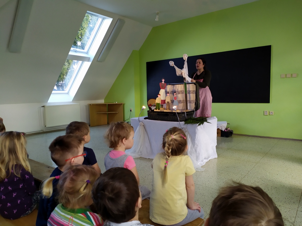 V posledním únorovém týdnu jsme s dětmi vyrazili do Bezděkova nad Metují na divadelní představení „Český rok“. Paní dětem představovala tradice a zvyky, které nás doprovázejí celým rokem.