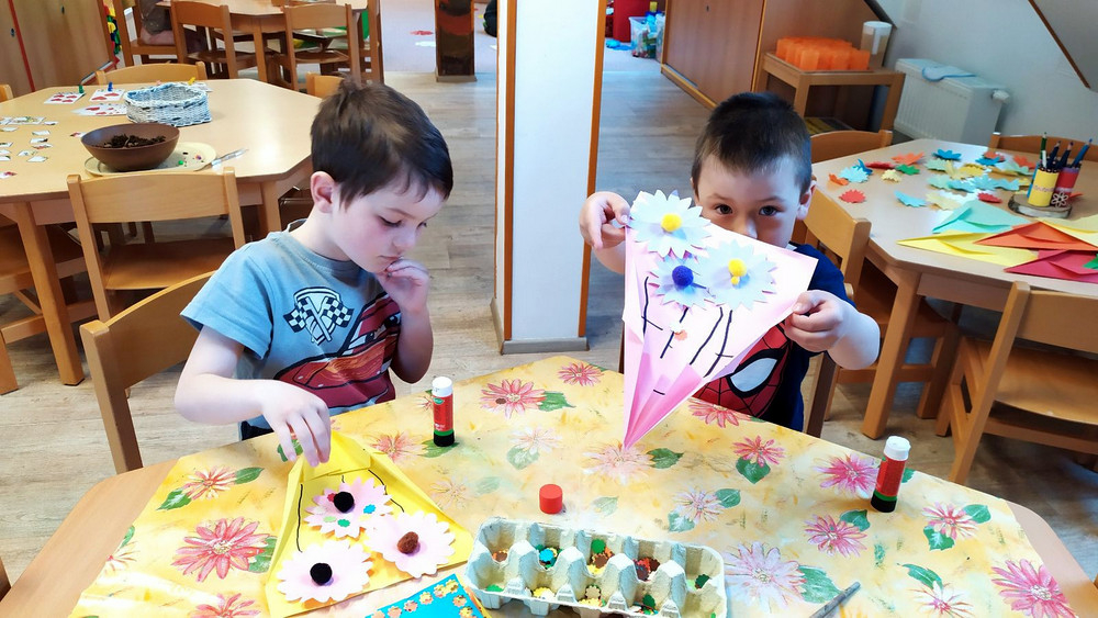 Začátkem měsíce děti připravovaly překvapení pro maminky, které měly 9. 5. svátek. Vytvořily krásné papírové kytičky a srdíčka z korálků, které jistě potěšily.