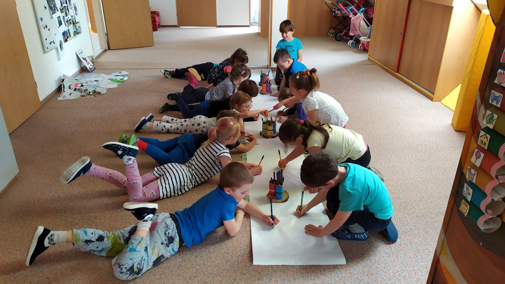 Na vycházkách děti poznávaly jarní květiny, určovaly barvy a také si všímaly krásně se zbarvující přírody. Další týden se překulil do pořádně barevného…Děti přicházely v barvičkách dne, plnily barevné úkoly a samozřejmě nesměla chybět svačinka a oběd dané barvy.