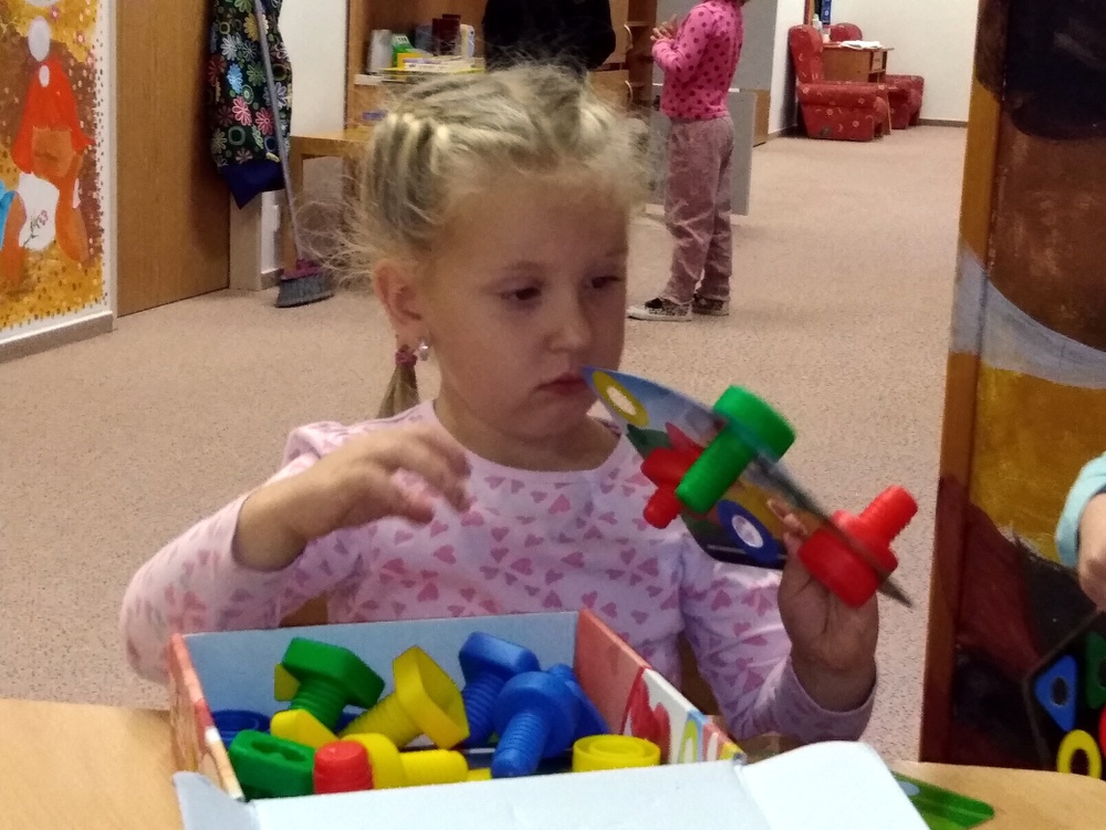Děti poznávaly, které předměty jsou charakteristické pro dané povolání. Věnovali jsme se také hudebně – rytmickým činnostem a společně jsme zkoušeli pohybově ztvárnit písničku „Šel zahradník do zahrady“ s doprovodem na Orffovy nástroje, ale i jiné písničky a pohybové hry, které s tímto tématem souvisely.