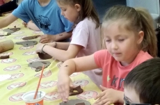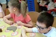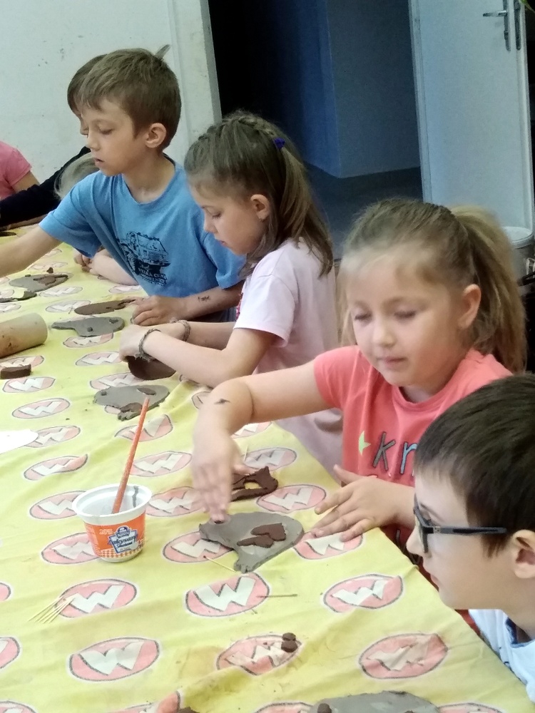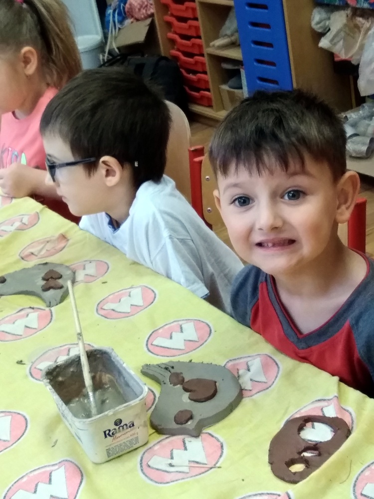 3.května jsme vyrazili do Hronova do Domina. Nejprve jsme navštívili keramickou dílnu, kde si děti vyrobily dáreček pro maminku. Každý si vykrojil z hlíny ptáčka a ozdobil si ho podle své fantazie.