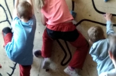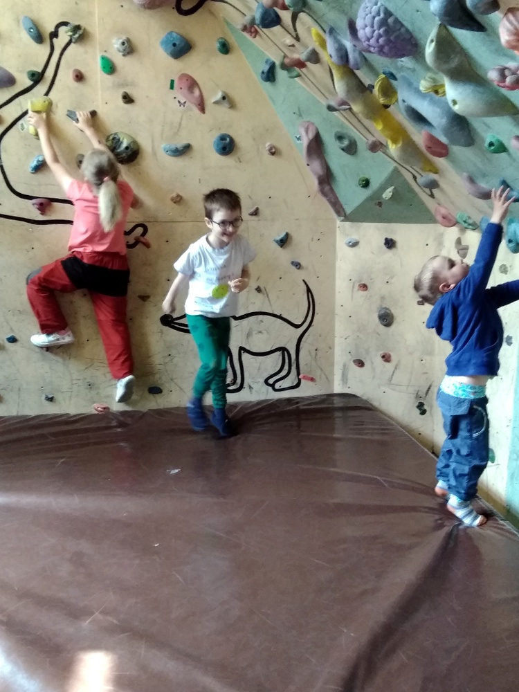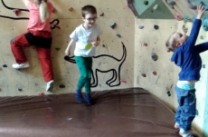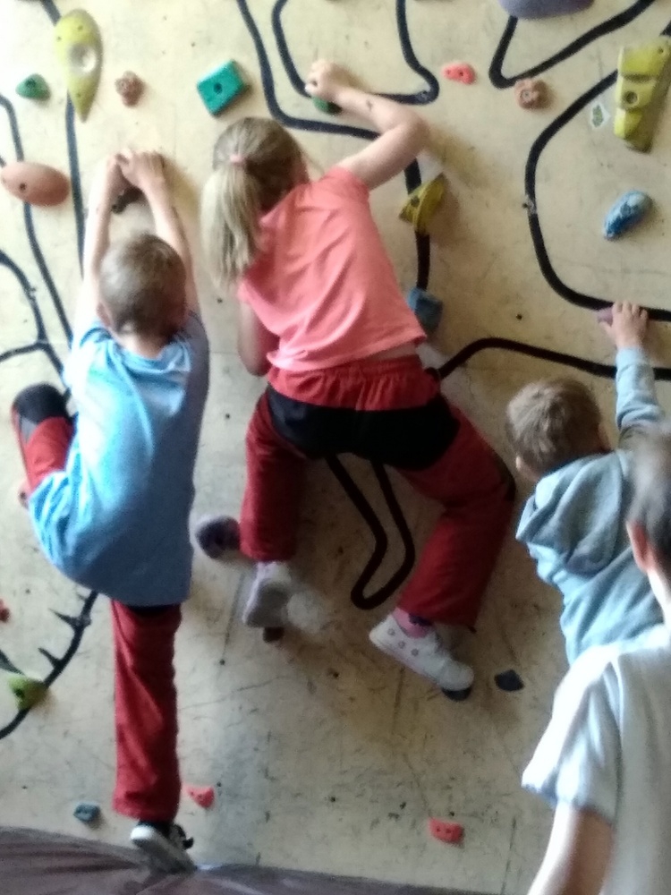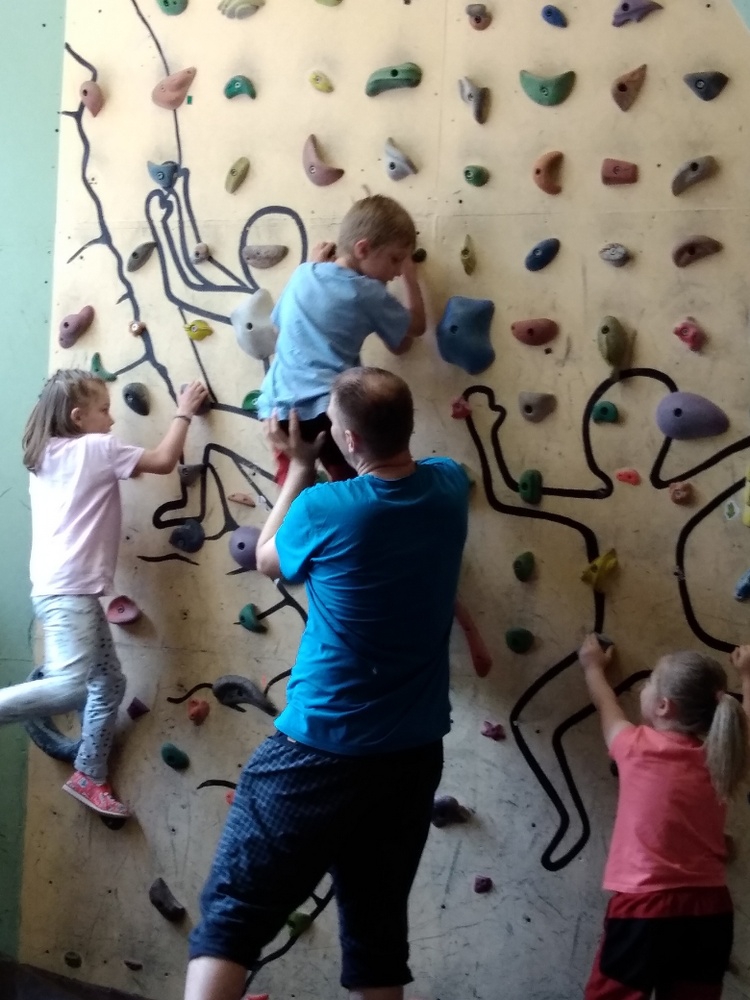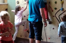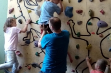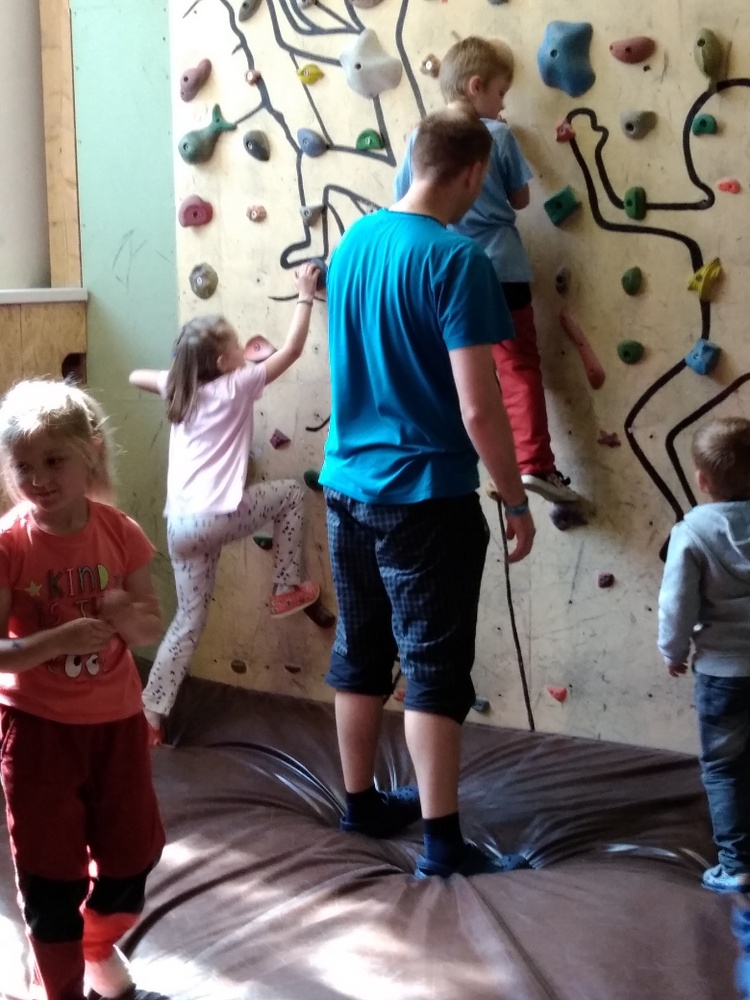 Potom jsme si zkusili lézt po horolezecké stěně.