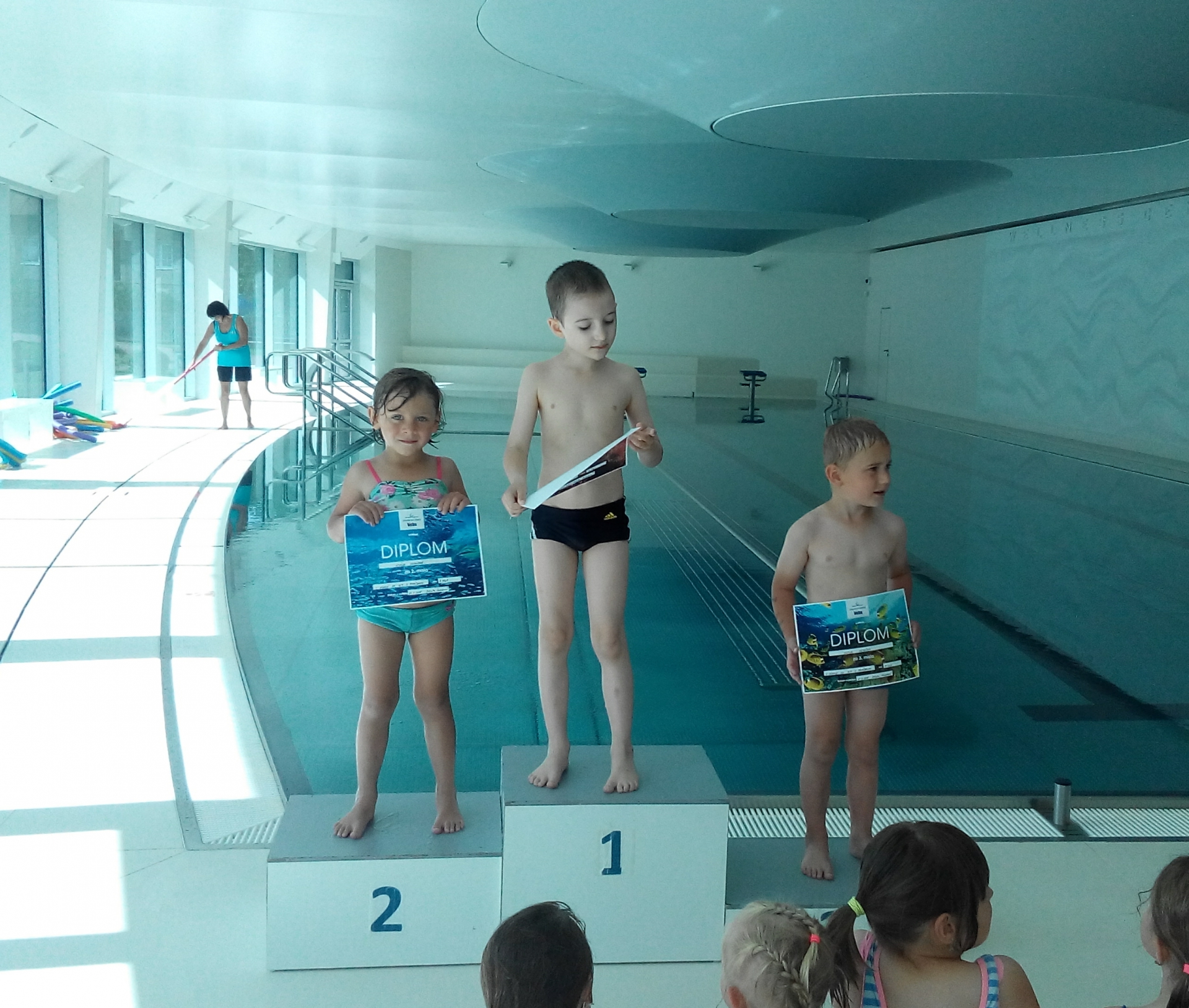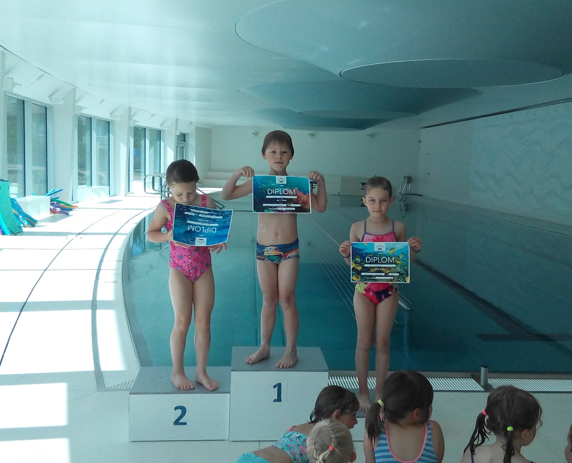 22.6.2018 jsme ukončili plavecký výcvik. Opět byli stupně vítězů, tentokrát za každou skupinku zvlášť. Letos jsme měli velkou radost, 3 děti přeplavaly bazén = 25 m bez záchranných pomůcek.
