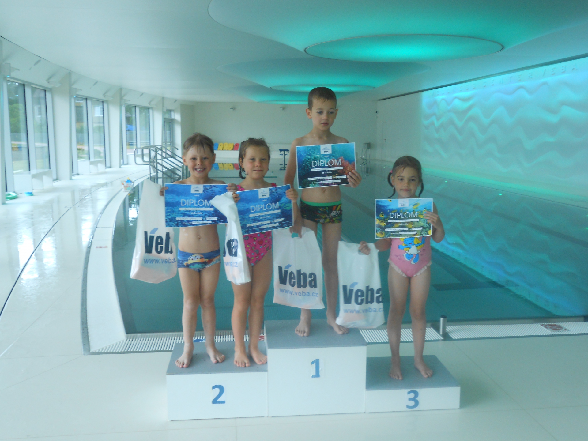 Tento den se konaly závody – na 1.místě se umístil Matyášek Pásler, na 2.místě Julinka Pášmová spolu s Gustíkem Kejzlarem a na 3.místě Rozárka Šedková. Letos se vody nikdo nebál!