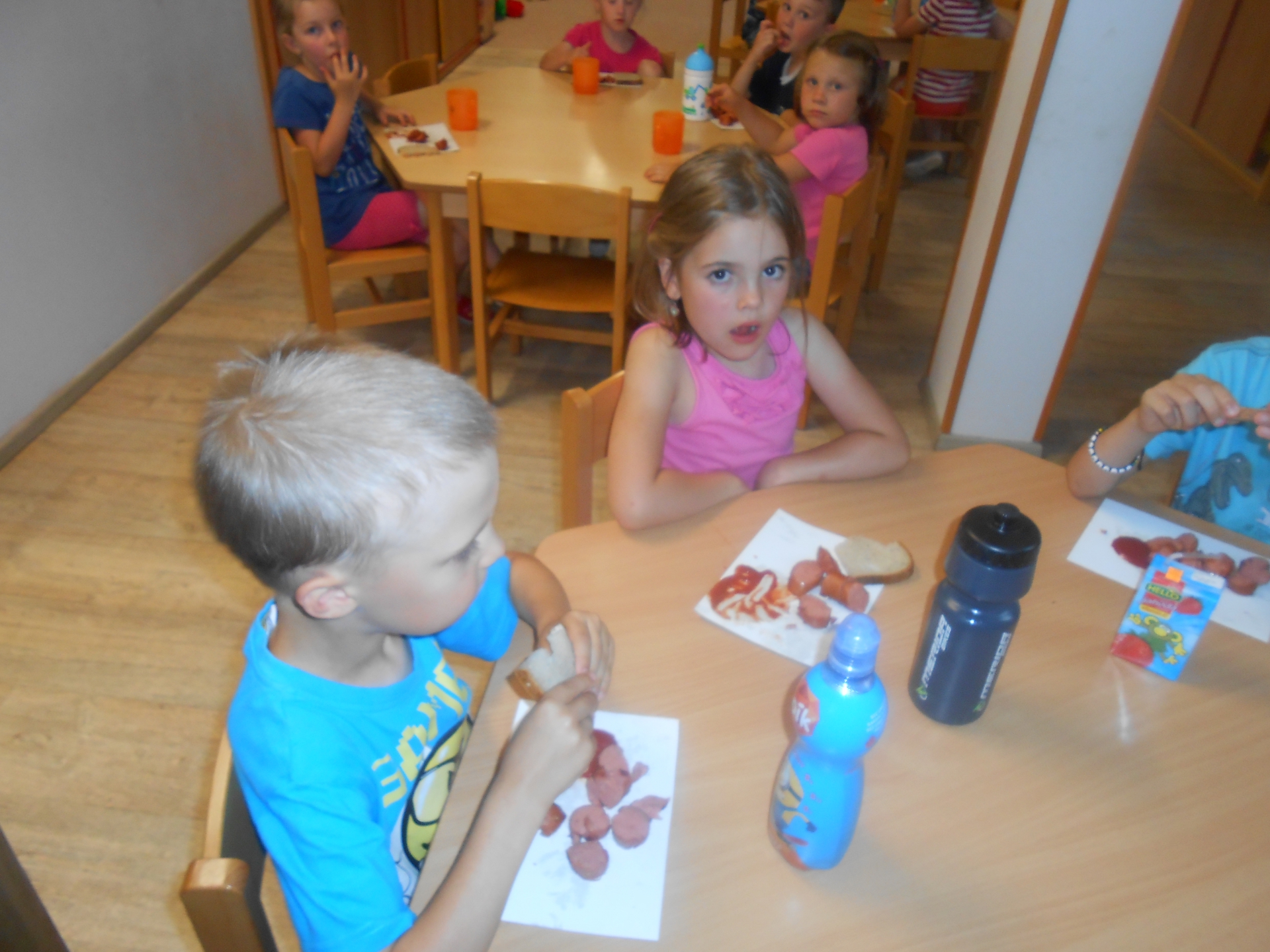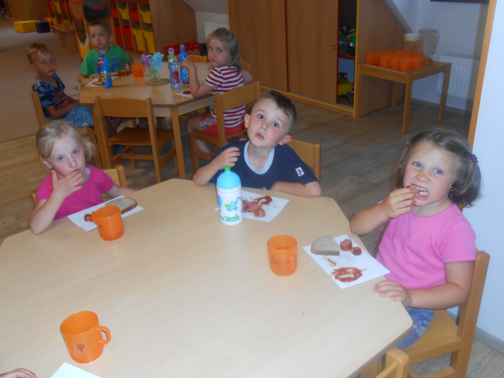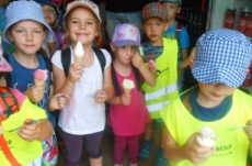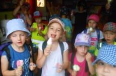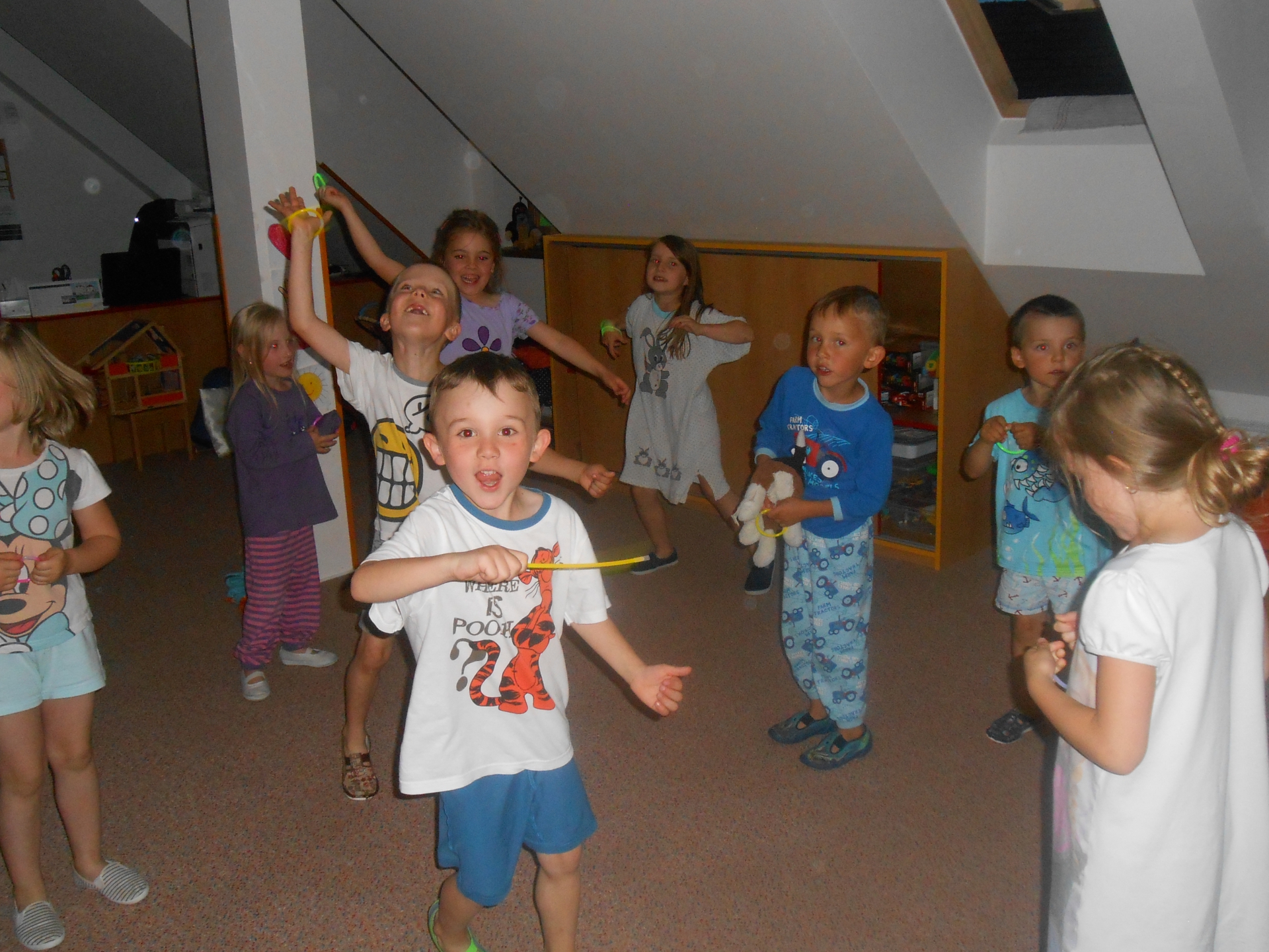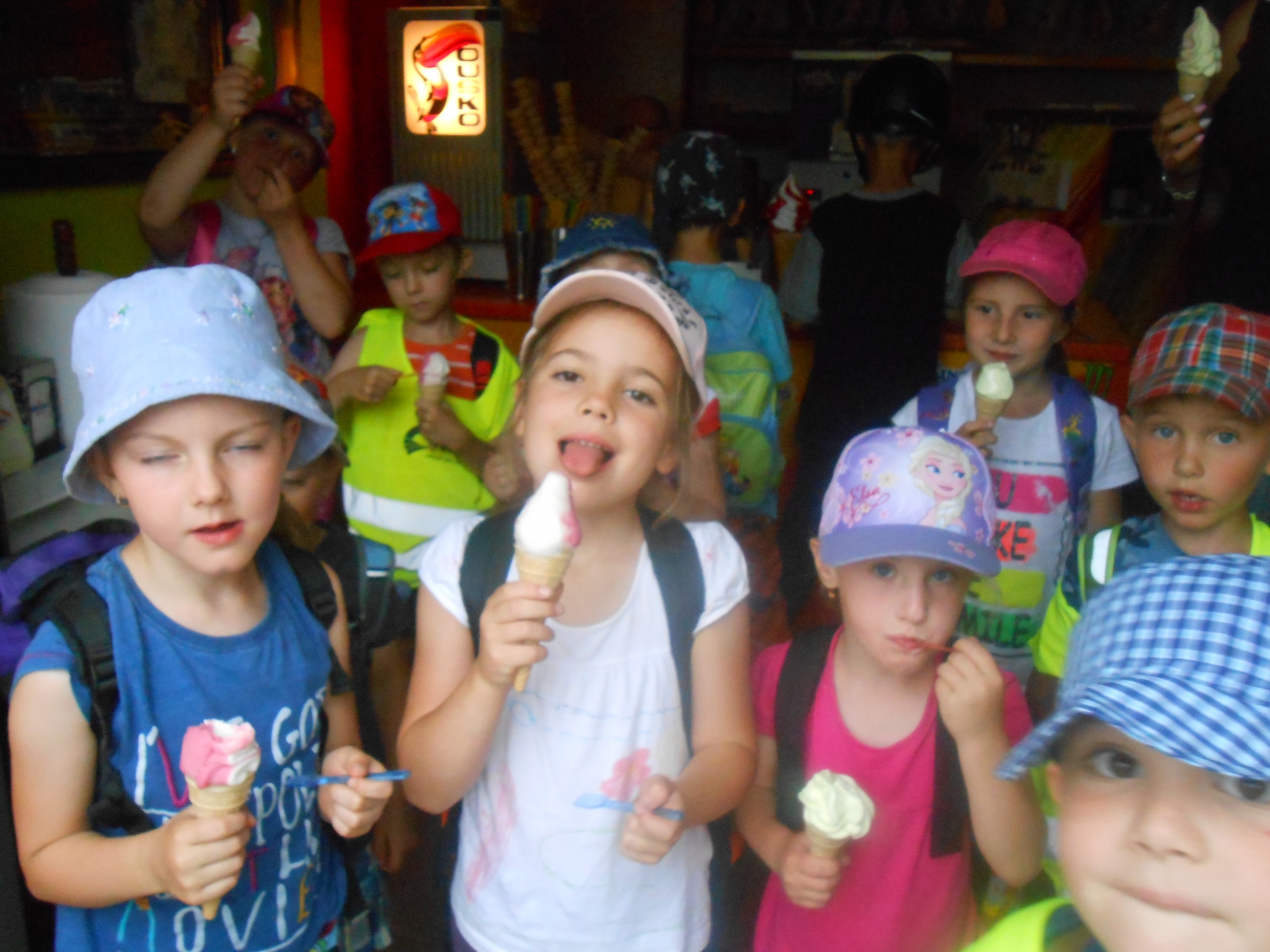 V úterý 27.6. proběhlo ve školce přespávání. Děti se moc těšily, jen nám bohužel nevyšlo počasí. V Polici jsme stihli pouze zmrzlinu a mohli jsme jet nazpátek. Ale i tak jsme si to užili, v tělocvičně jsme si zahráli s padákem, v troubě jsme si upekli buřty a konala se po školce i stezka odvahy.