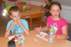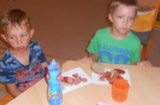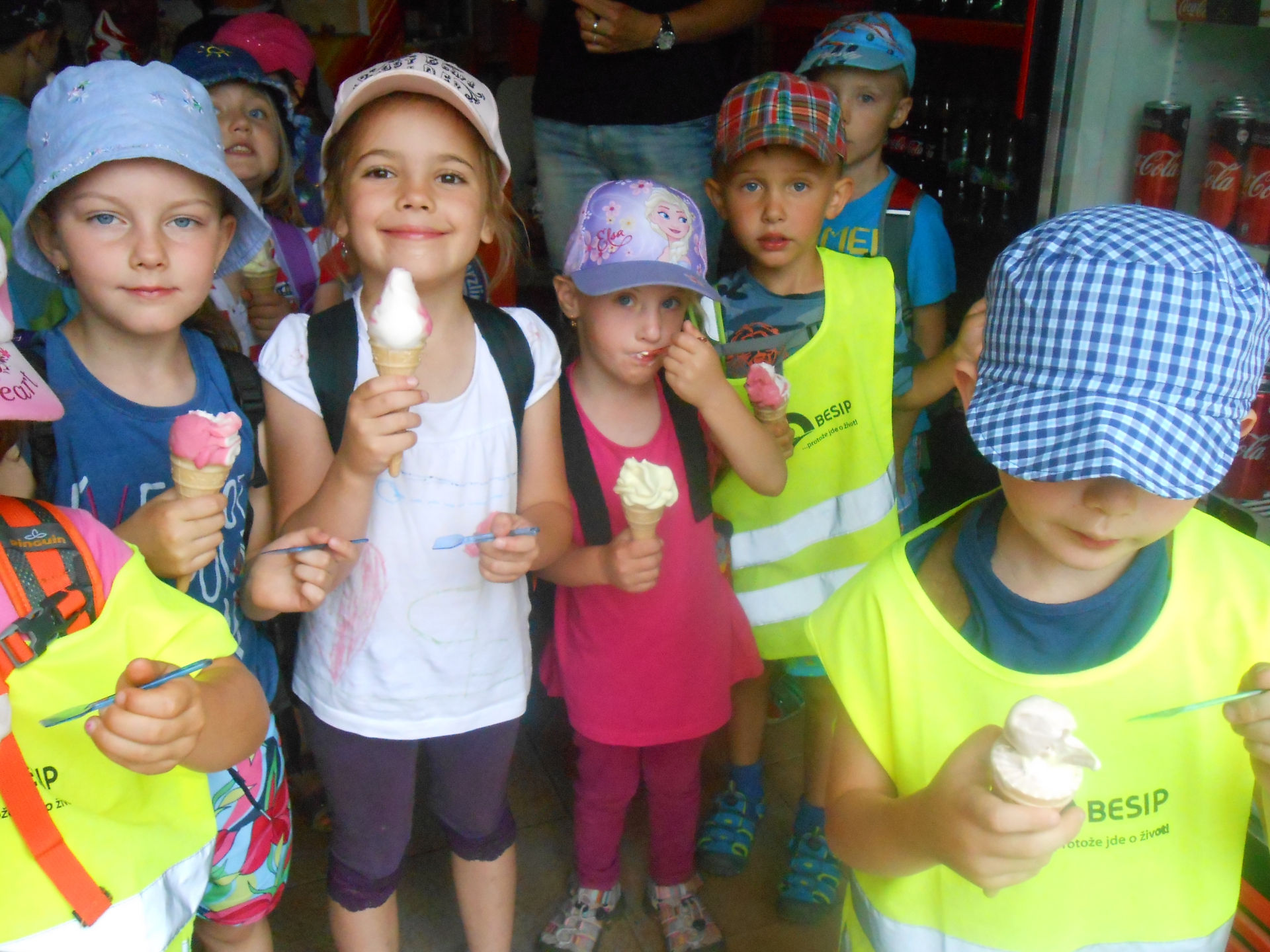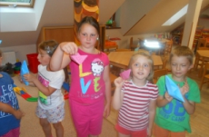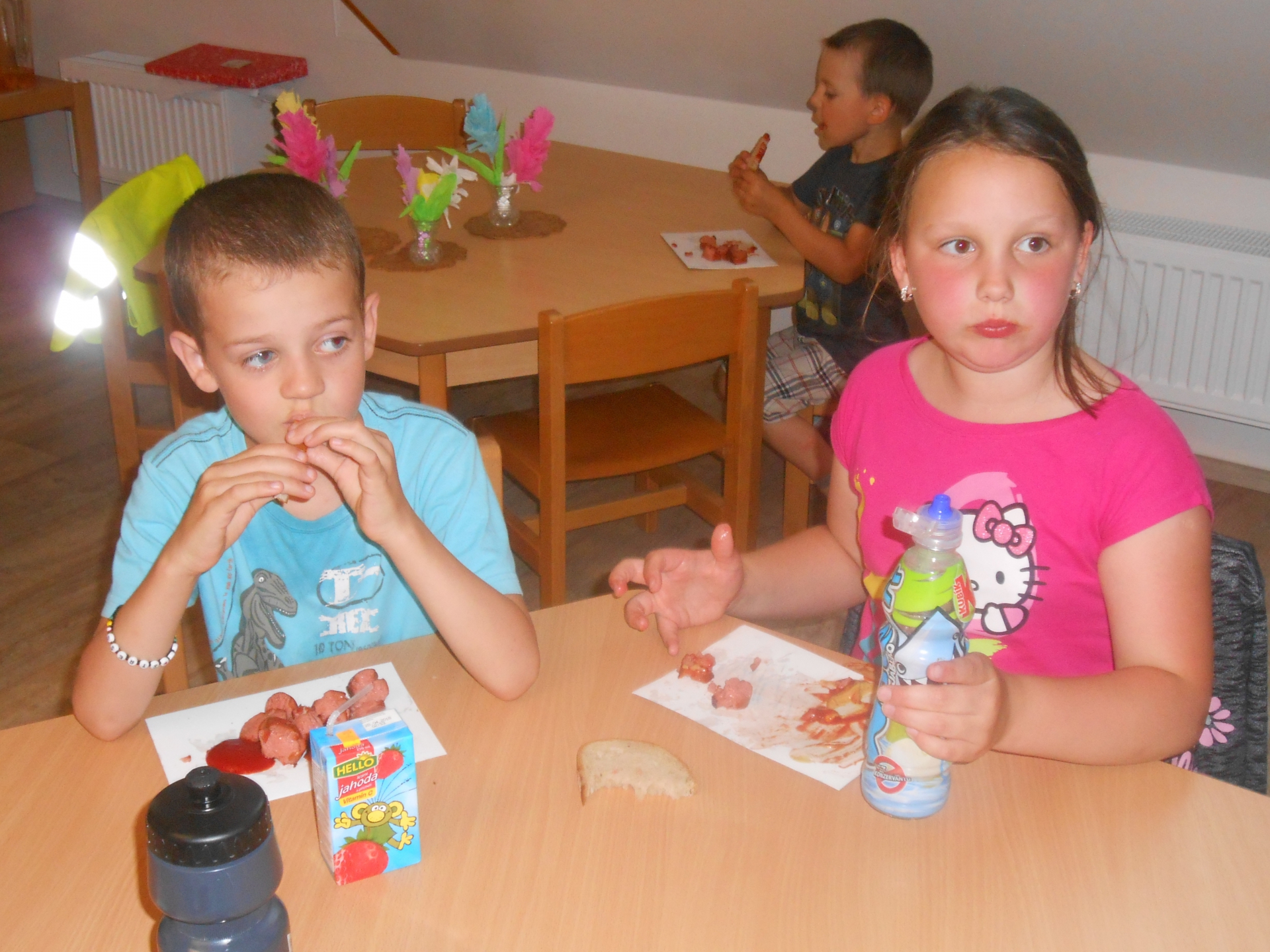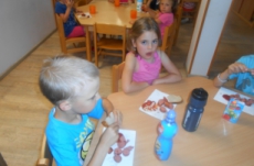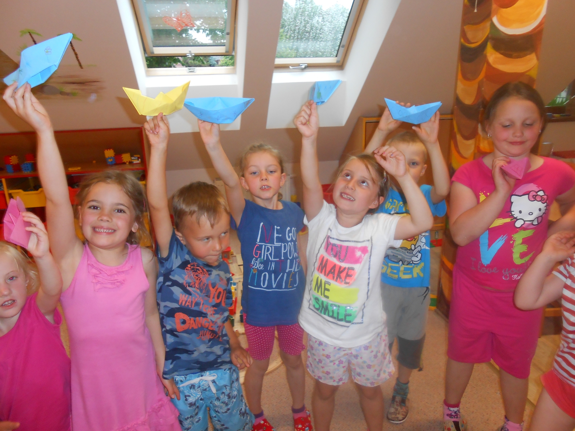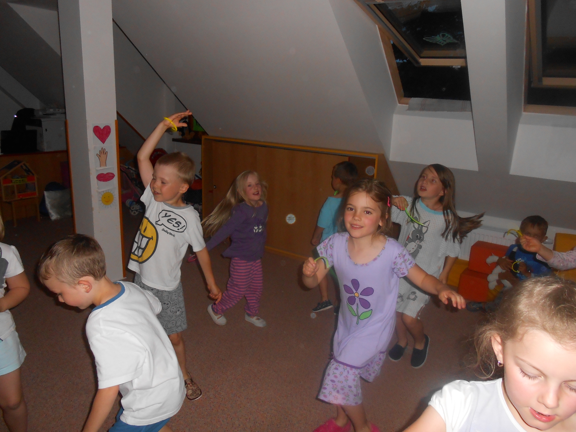 V úterý 27.6. proběhlo ve školce přespávání. Děti se moc těšily, jen nám bohužel nevyšlo počasí. V Polici jsme stihli pouze zmrzlinu a mohli jsme jet nazpátek. Ale i tak jsme si to užili, v tělocvičně jsme si zahráli s padákem, v troubě jsme si upekli buřty a konala se po školce i stezka odvahy.