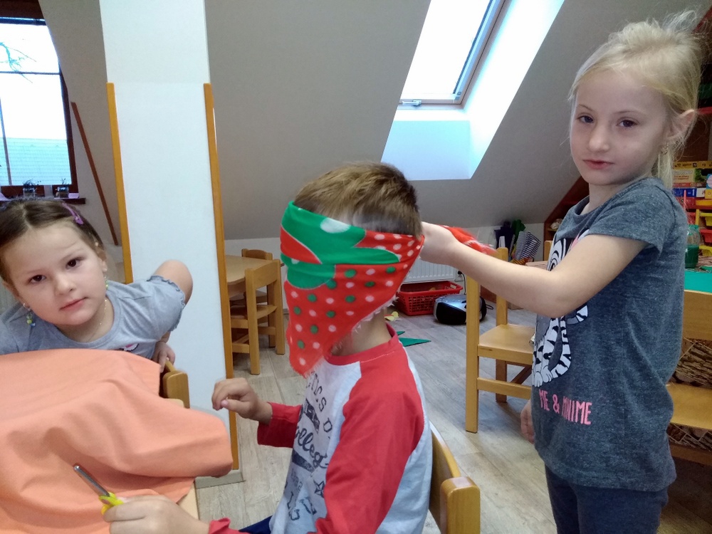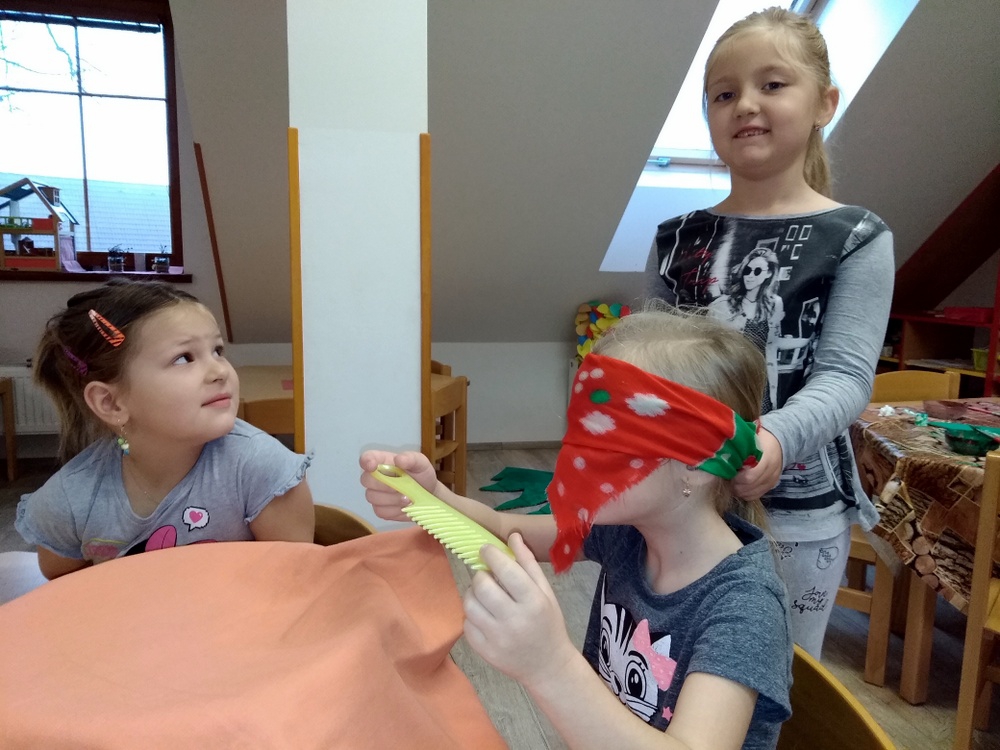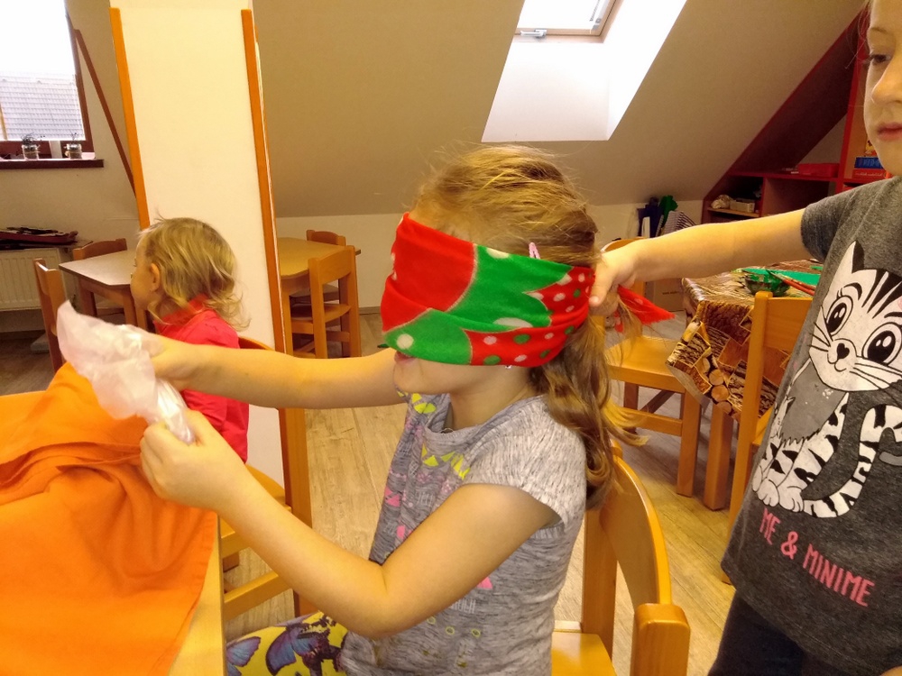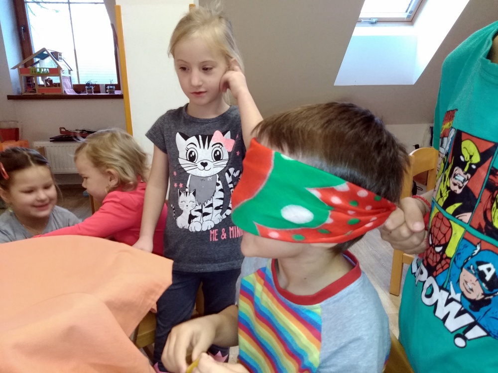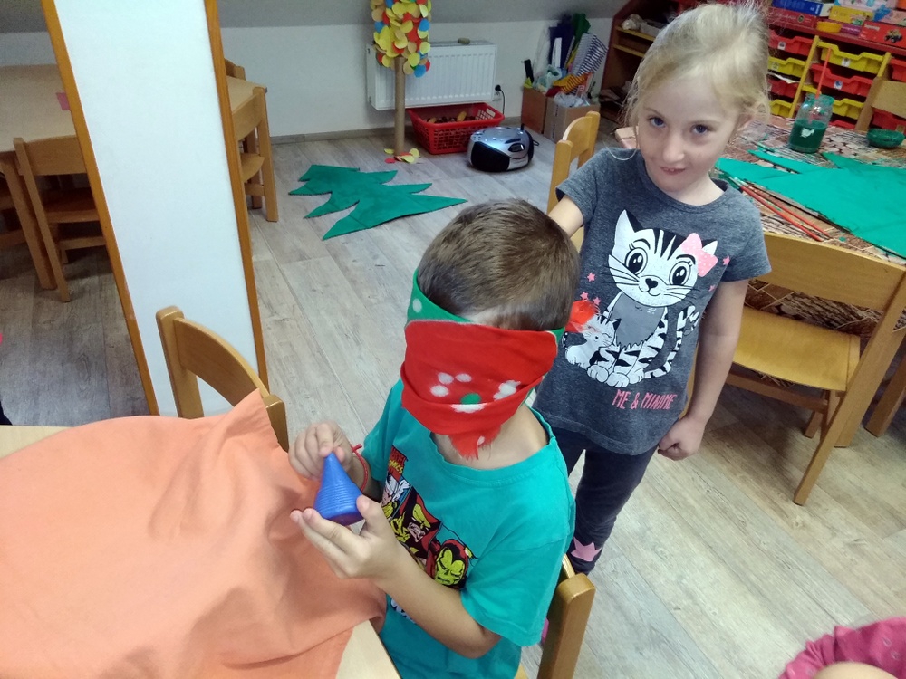 Víme, že člověk má pět smyslů, kterých si musíme vážit. Hmat, čich, zrak, chuť a sluch jsme procvičovali formou zábavných her (hmatové hry se zavázanýma očima, rozeznávání vůní koření, rozeznávání různých zvuků, poznávání různých potravin podle chuti, foukali jsme do kuličky,.).