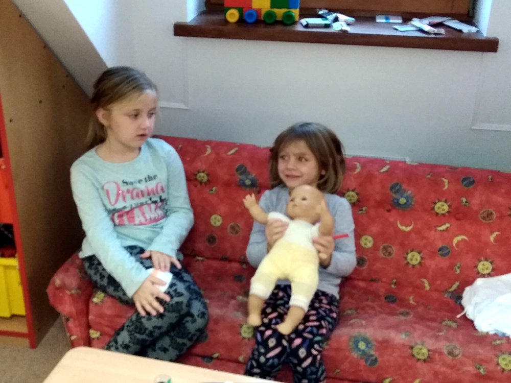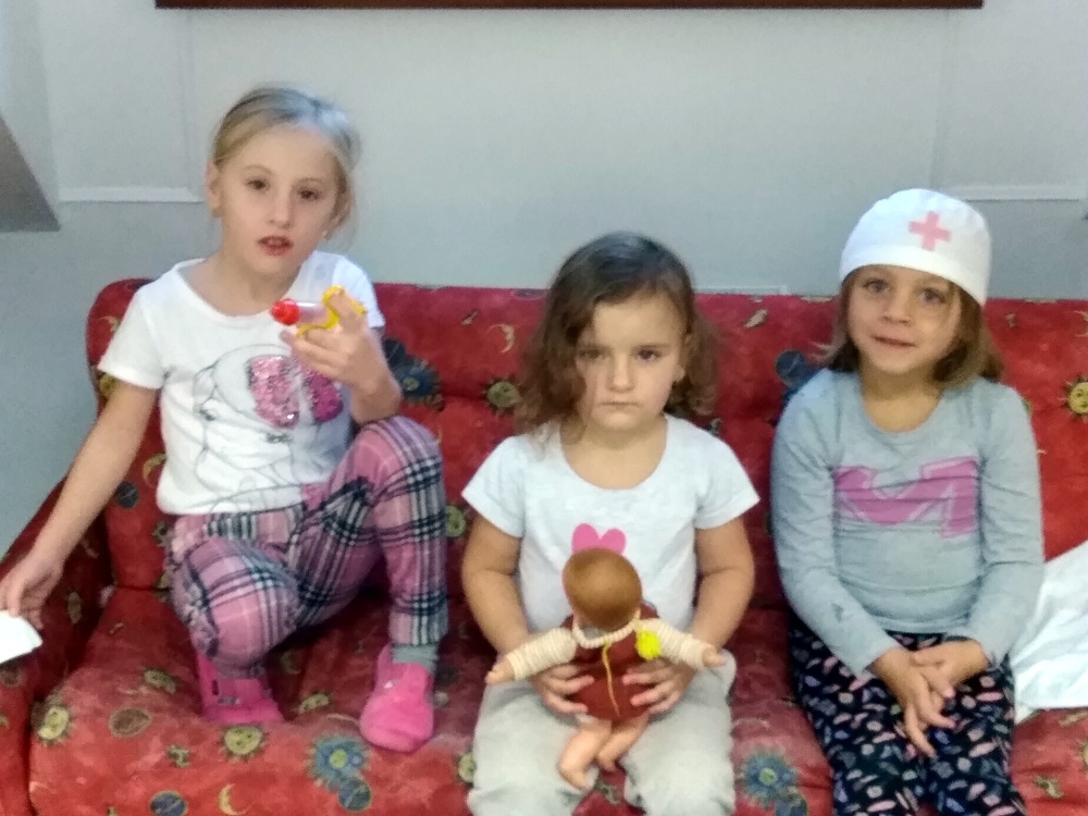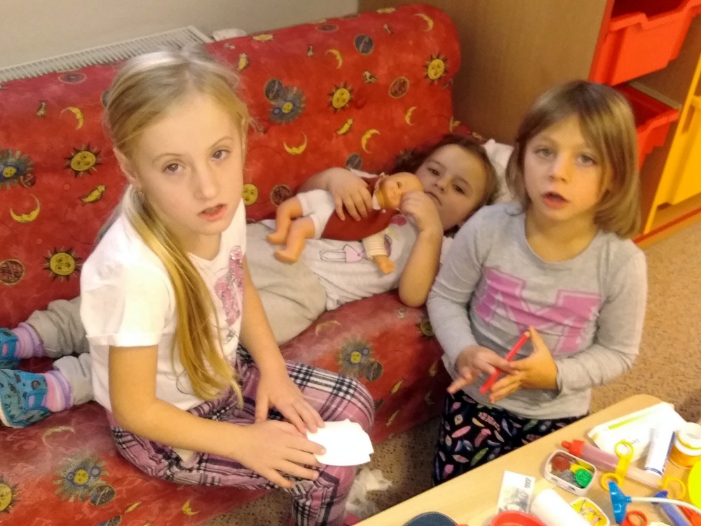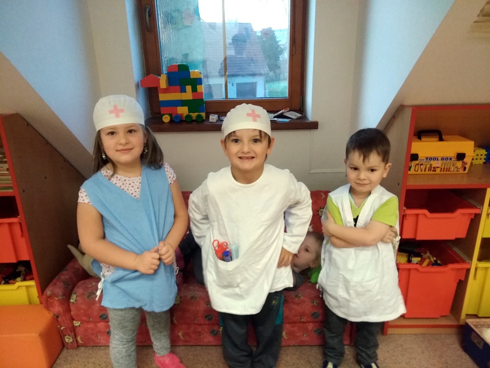 Hráli jsme si na ordinaci, nemocnici, lékaře, sestřičky a záchrannou službu. Léčili jsme děti, panenky a plyšáčky.