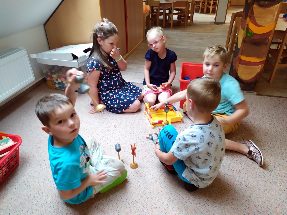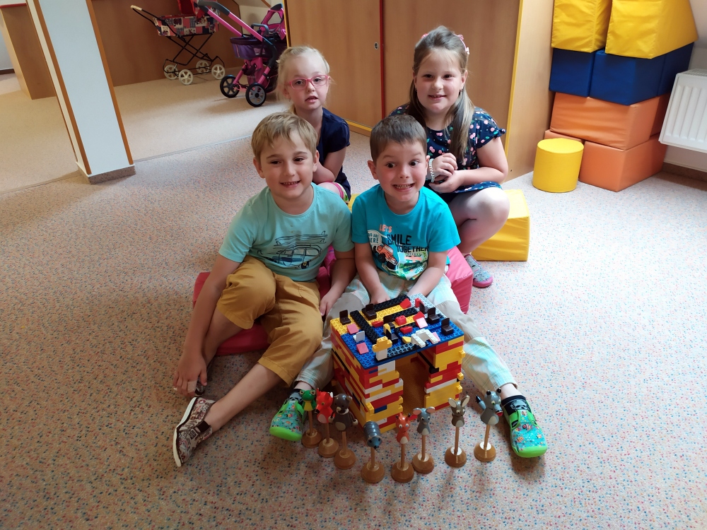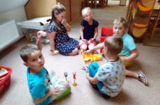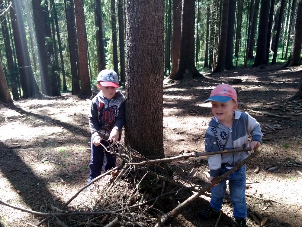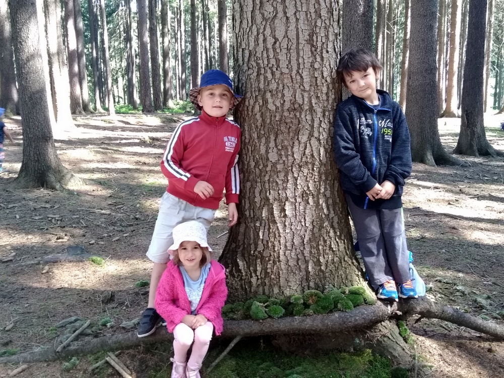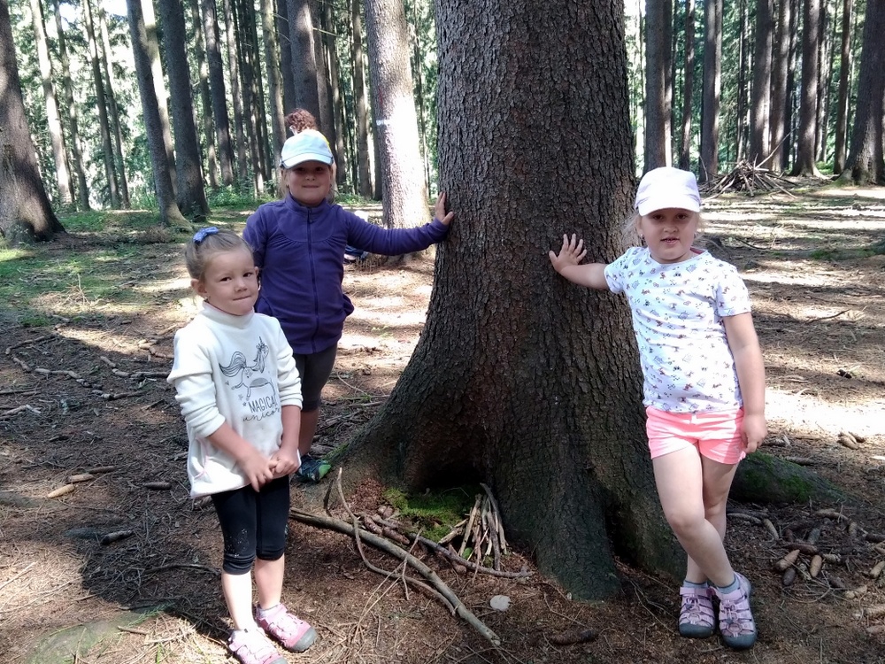Procházka to byla opravdu krásná…U krmelce jsme stavěli domečky pro skřítky, sluníčka ze šišek, hostinu pro zvířátka a mnoho dalšího. Také jsme si zahráli oblíbenou hru na schovávanou. Když jsme se zdárně všichni našli, vydali jsme se zpátky do školky. A cestou se nám poštěstilo – viděli jsme srnce a dokonce našli i dvě houbičky.