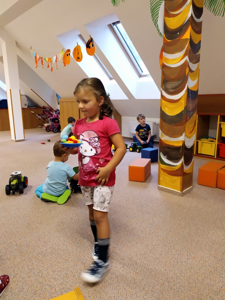 Odchod rodičů zvládly skvěle a skoro bez slziček!:-) Kamarádi ze školky je hezky přijali mezi sebe, ukázali jim hračky a vtáhli je do svých her. Tento týden se nesl v duchu seznamování, her ve školce i venku, ale i oslavy dvou našich kamarádů, kterým přejeme jen to nejlepší!:-)