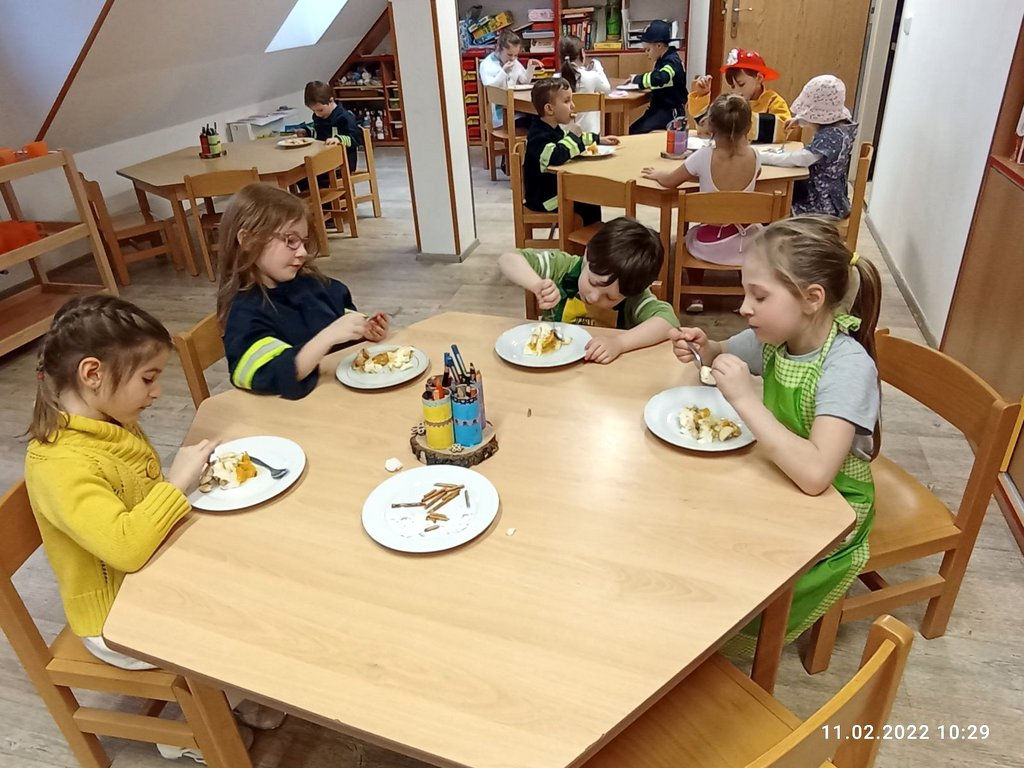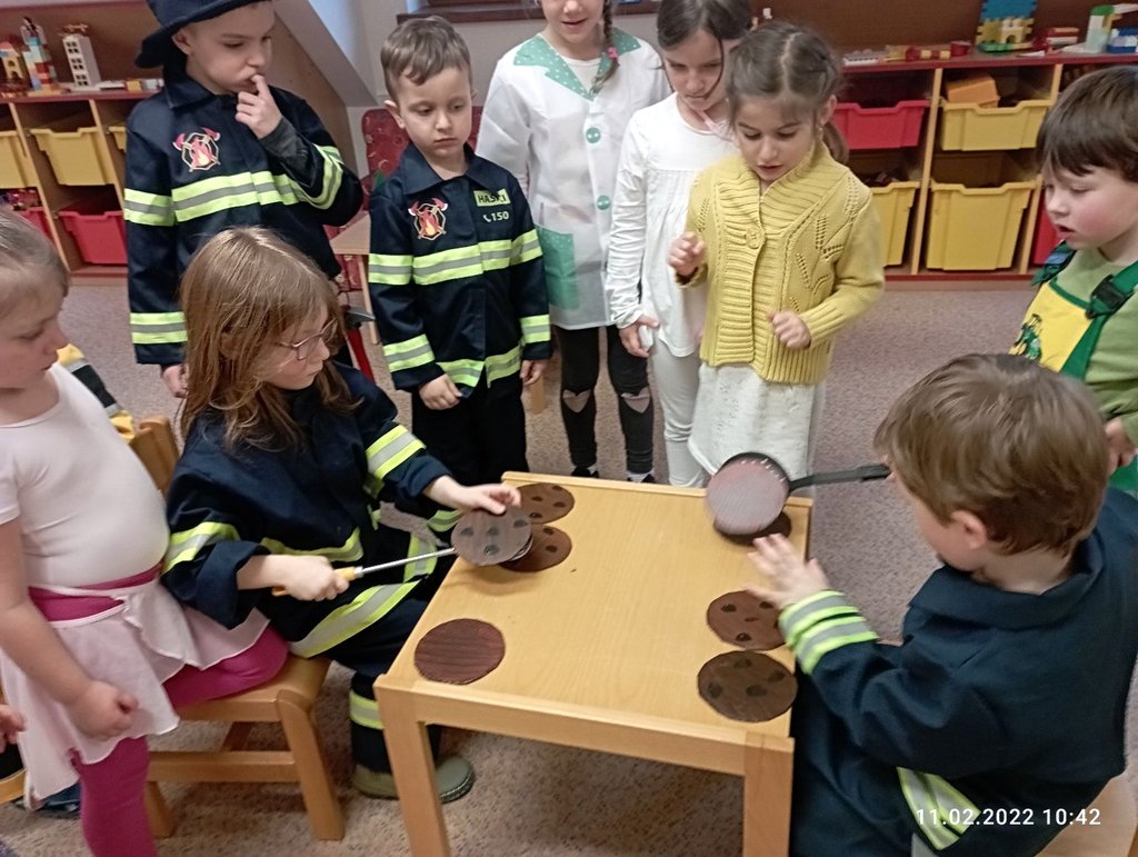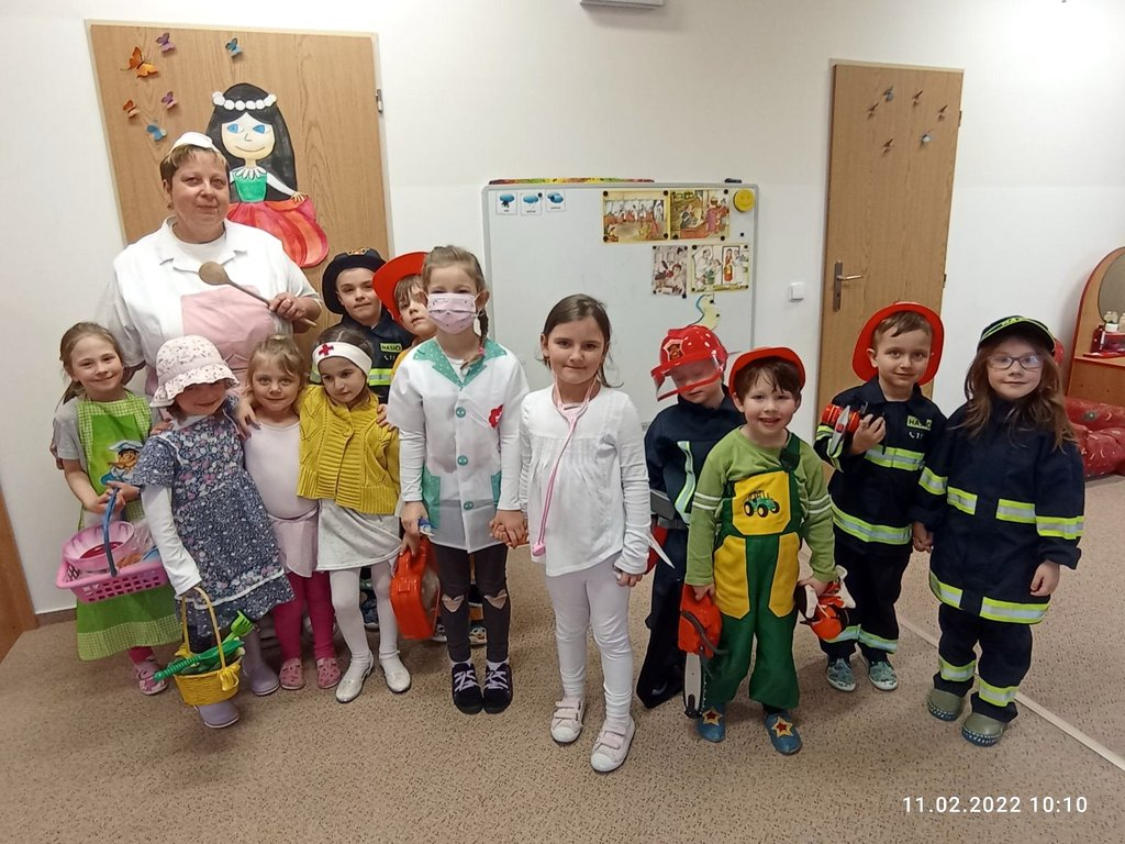 Téma řemesel vyvrcholilo karnevalem. Školka byla plná hasičů a doktorů, objevila se však i zahradnice, baletka, kuchařka, dřevorubec. Karneval byl plný her a legrace. Děti si přichystaly i občerstvení – udělaly si dort, který všem chutnal. Vyvrcholením bylo jako vždy vystřelení rakety s konfetami. Škoda jen, že řada dětí byla nemocná.