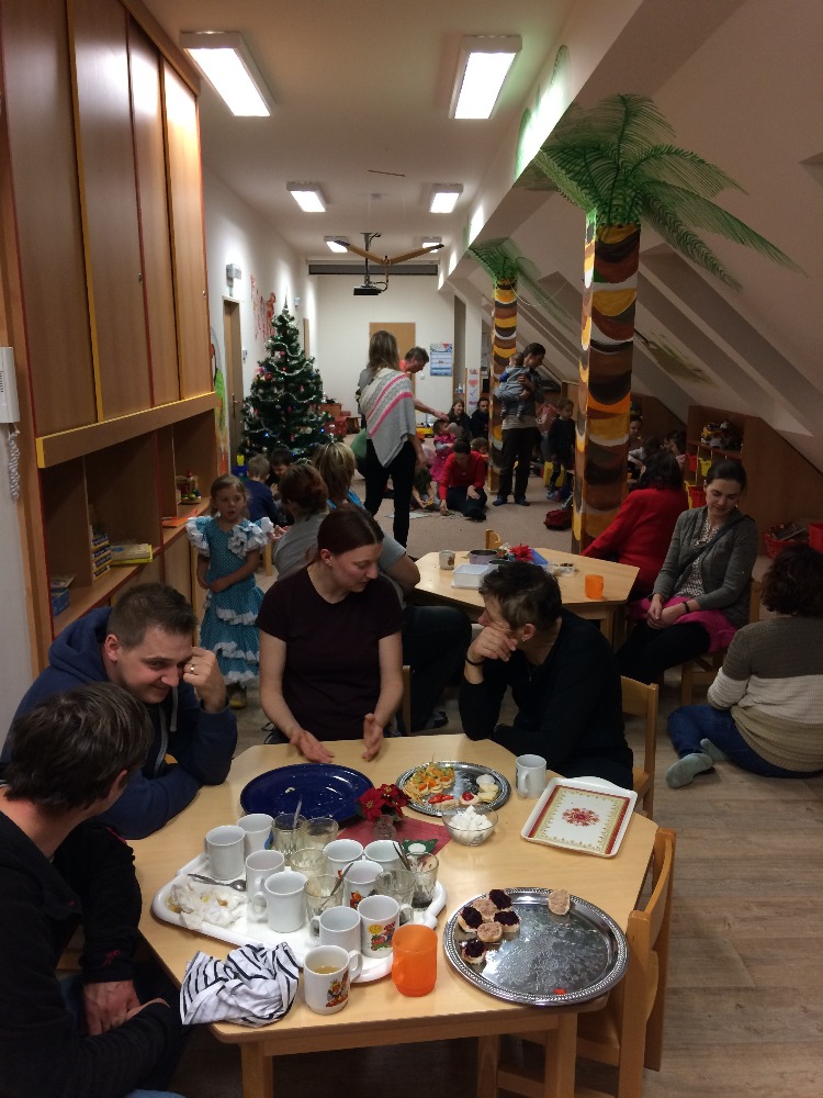 Každý se naučil svoji básničku, zazpívali jsme si společně vánoční písničky a koledy, nacvičili jsme tanečky i pohádku . „Já stromeček“. I když nás bylo poměrně málo, kvůli nemocem, děti to zvládly na jedničku! Po vystoupení jsme si všichni poseděli ve školce u čaje, kávičky a různých dobrůtek, které nám připravily maminky. Tímto jim ještě jednou děkujeme!