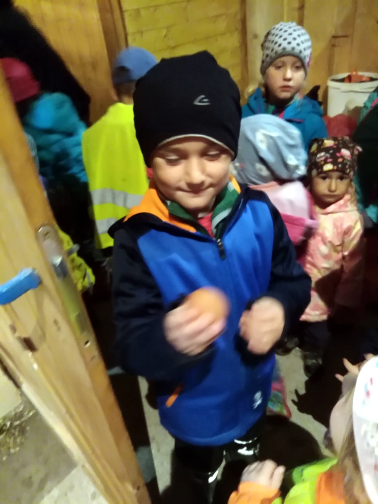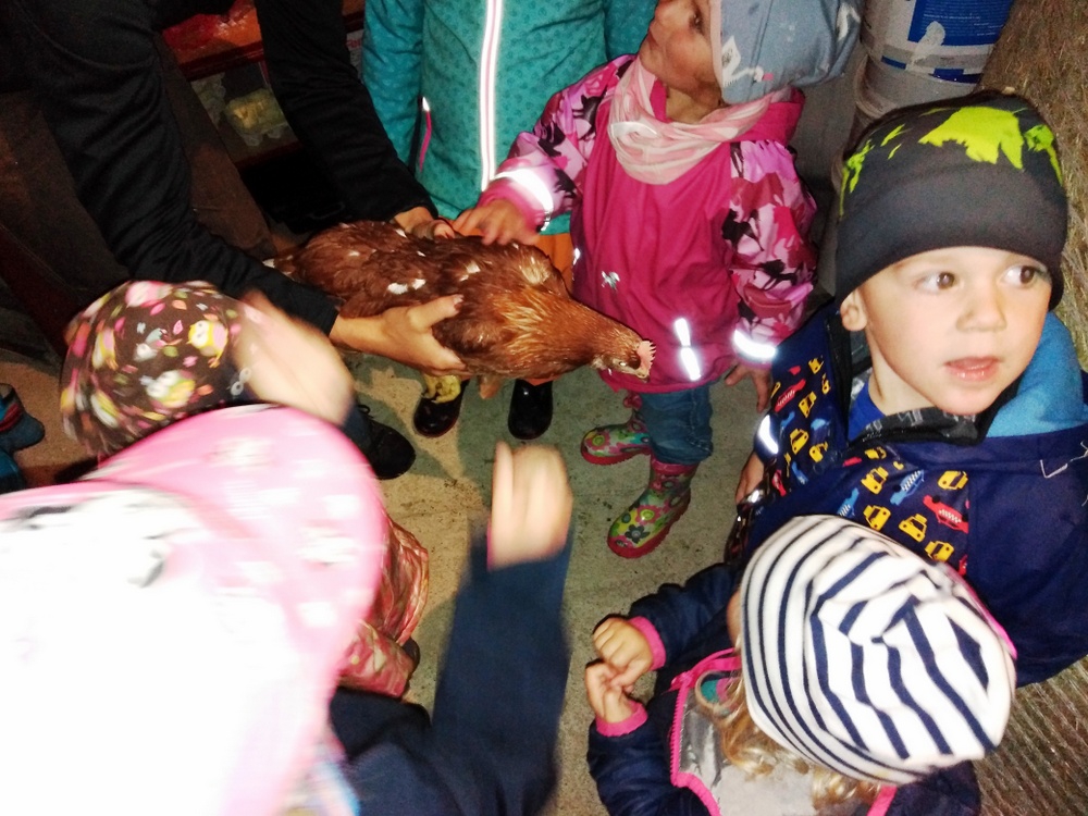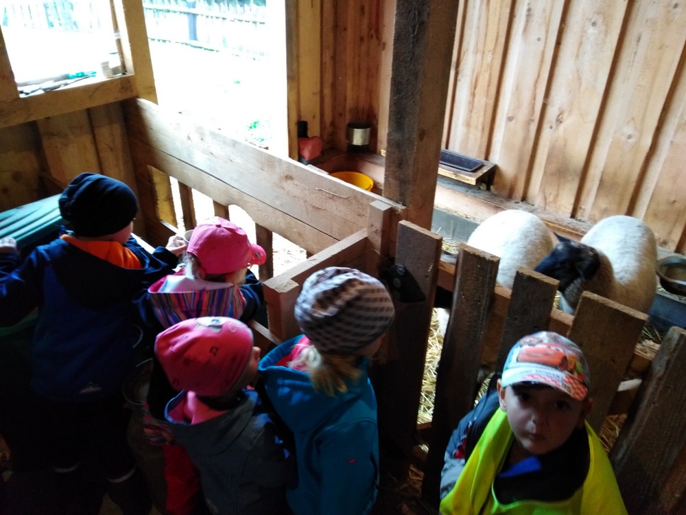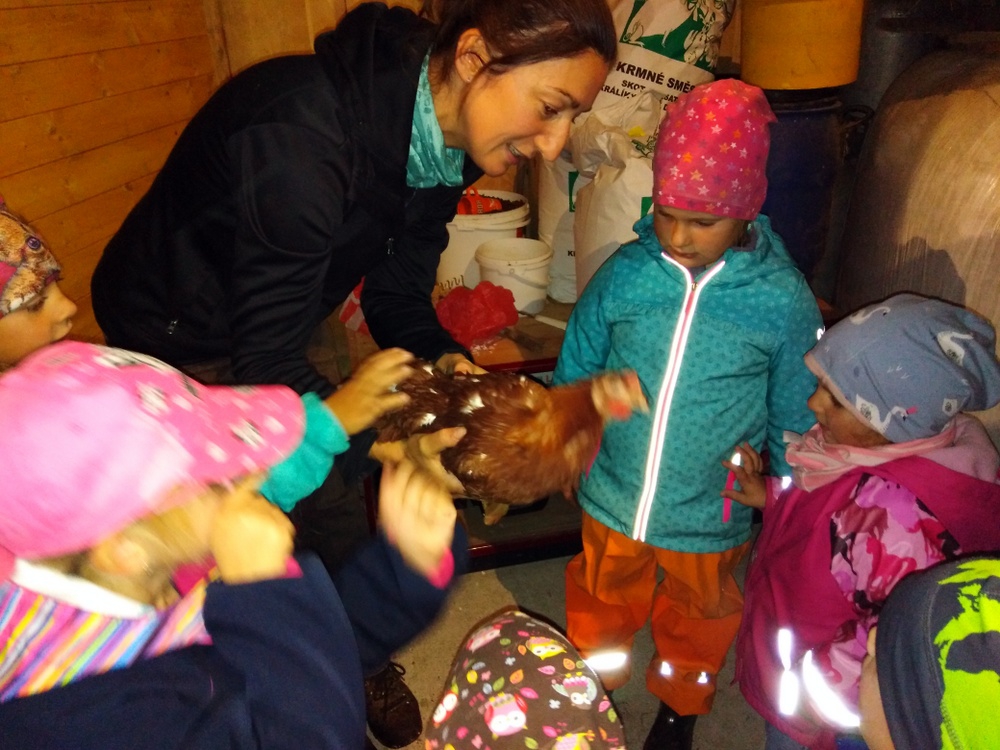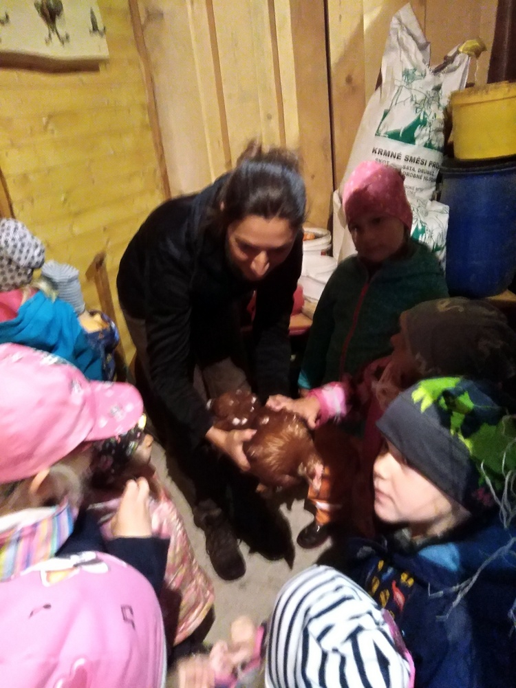 Využili jsme pozvání podívat se na zvířátka našich kamarádů. Artík s Olinkou nám ukázali ovečky a slepice. Viděli jsme, kde zvířátka bydlí.