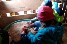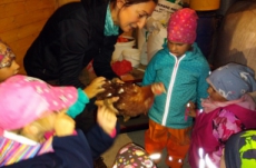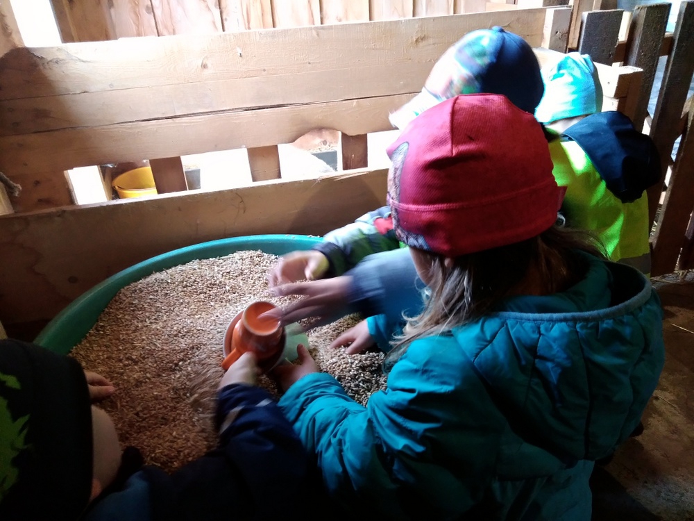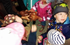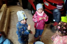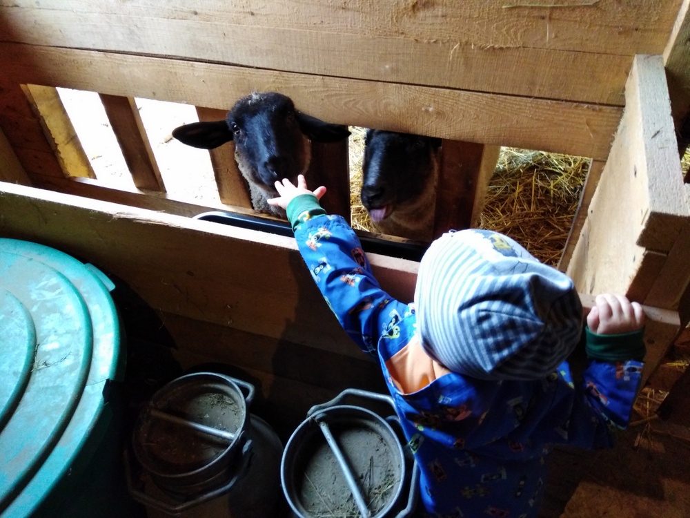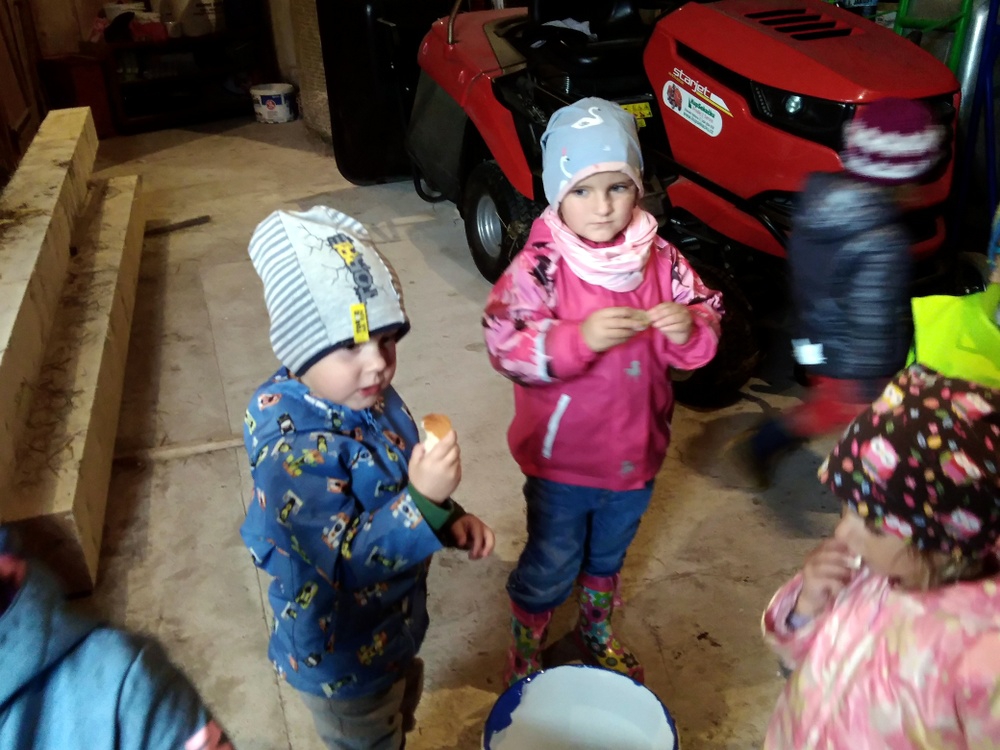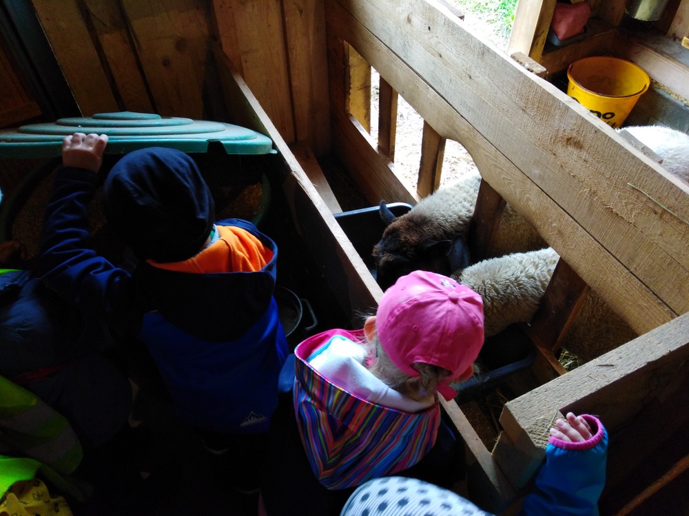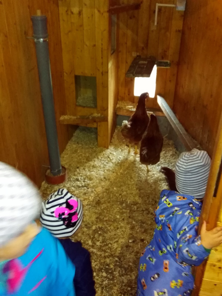 Využili jsme pozvání podívat se na zvířátka našich kamarádů. Artík s Olinkou nám ukázali ovečky a slepice. Viděli jsme, kde zvířátka bydlí.