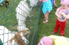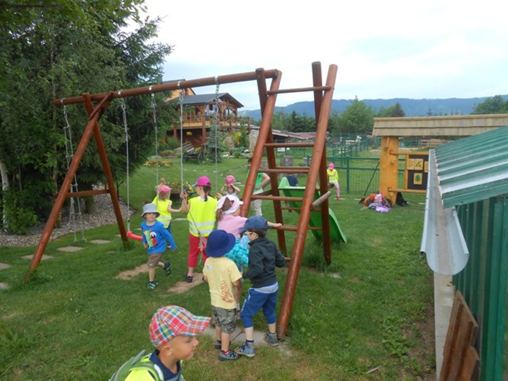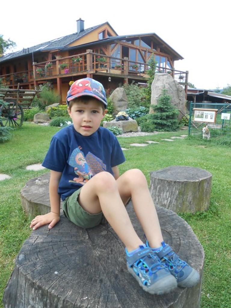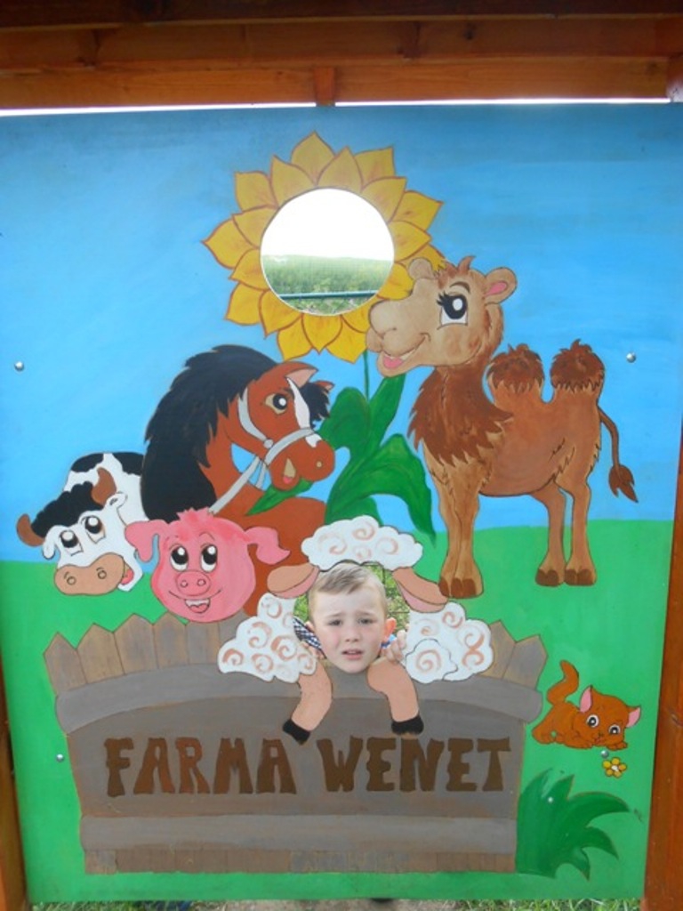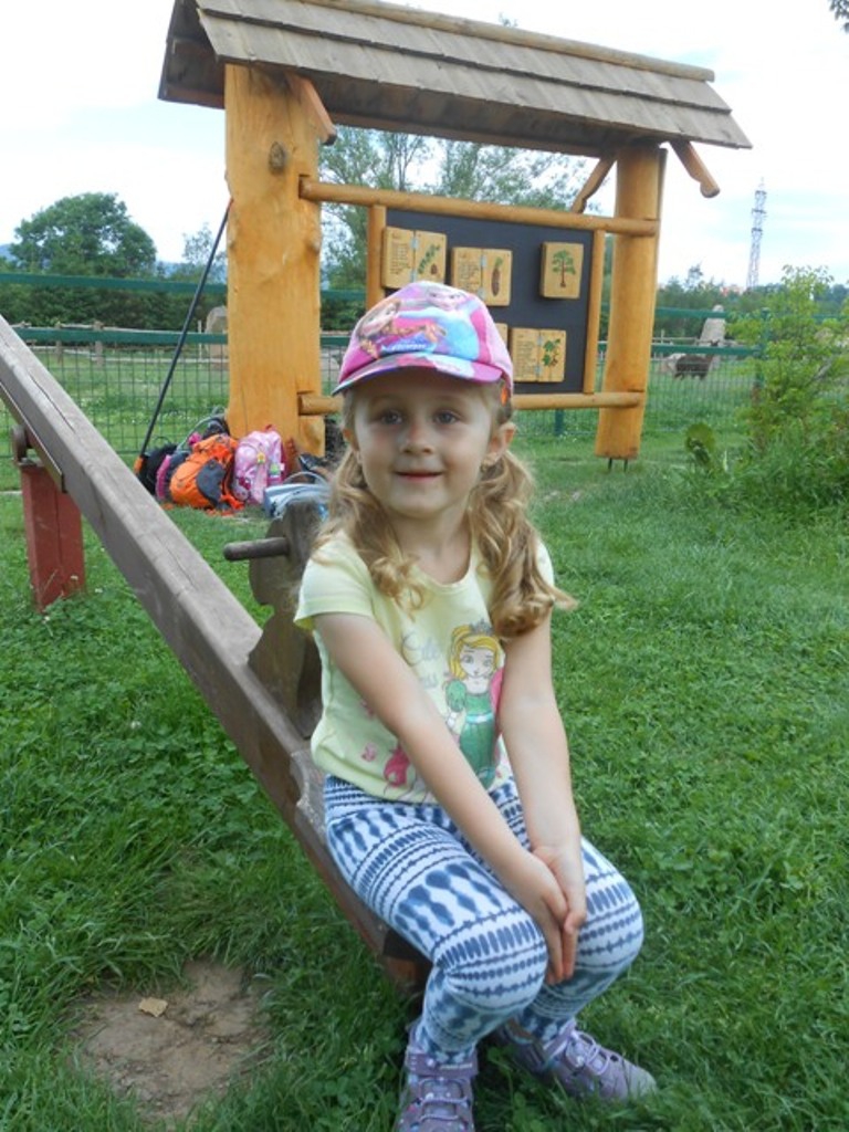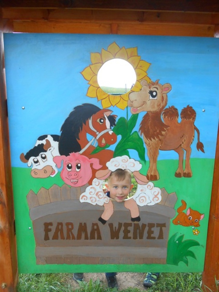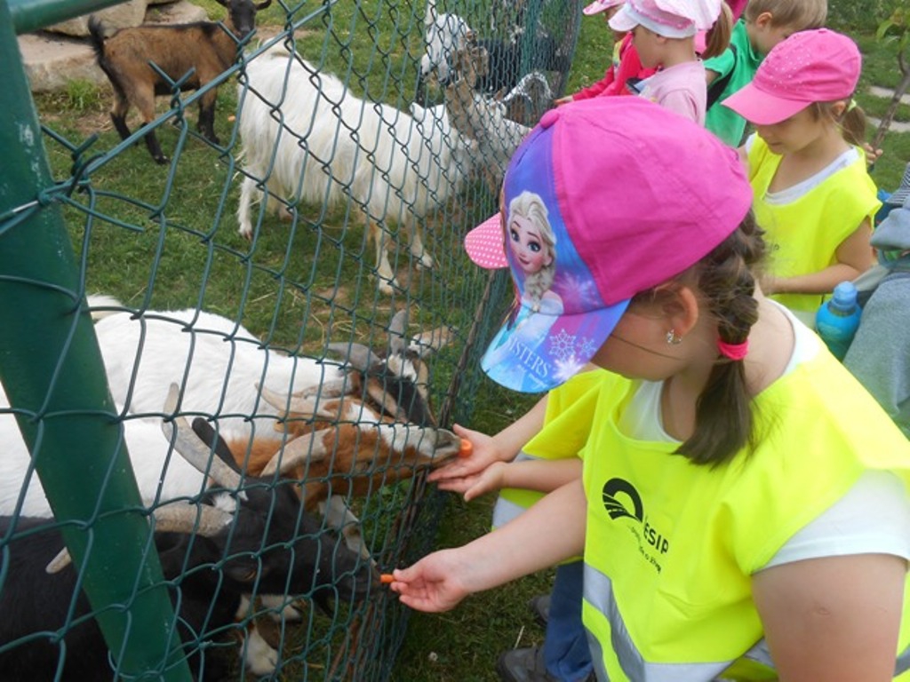 V Broumově na nádraží jsme si pochutnali na svačince a vydali se směrem Farma Wenet. Pan Weber nás provedl farmou, viděli jsme celou řadu zvířátek – kozy, pávy, lamy, pštrosy, velbloudy. Některým zvířátkům jsme mohli dát mrkev, některé jsme si i pohladili. Dokonce jsme viděli i čerstvě vylíhnuté kuřátko a dvoudenní prasátka. Na farmě jsme využili i malé hřiště s houpačkami a klouzačkou. A pak už nás čekal autobus, aby nás převezl ke klášteru, kde jsme si nejprve v parku pochutnali na „obědě“. Po jídle jsme si vyslechli vzdělávací program – Do podzemí za permoníky. Děti se zábavnou formou seznamovaly s různými kameny, pozorovaly jejich velikost, povrch. Později jsme kladívky drtili kámen na menší kousky, u kterých jsme pozorovali barvu. Vylezli jsme i na vysokou skálu, ze které jsme kamarádům zamávali. Na závěr si každý ve staré učebně svůj kamínek namaloval. Z Broumova jsme jeli domů autobusem. Jen co jsme si sedli, začalo pršet. Spousta dětí v autobuse usnula, ještě že byl pod kopcem pan starosta s autem! Výlet se opravdu vydařil, škoda jen, že nás bylo málo. Přes víkend dostaly děti teplotu a velký kašel.
