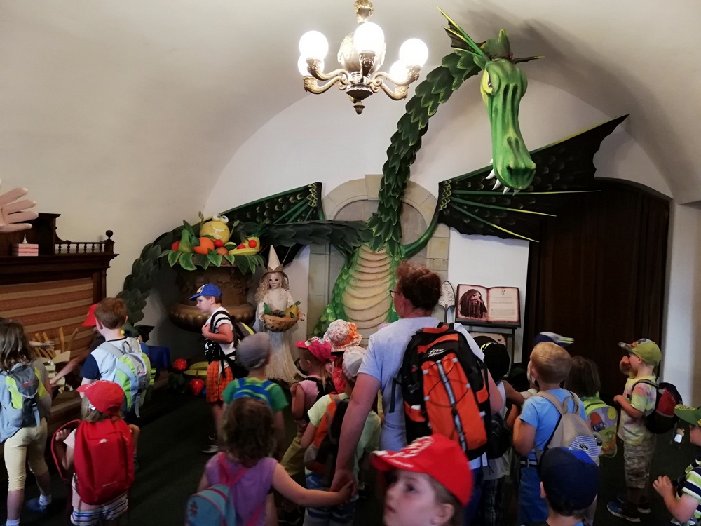 Počasí nám přálo až moc, bylo velké horko! Naštěstí jsme jeli autobusem s klimatizací, pan řidič byl velice ochotný, dokonce nám pustil během jízdy pohádky. Na Starých Hradech jsme navštívili nejprve okruh Zdravosvět a Dračí království, děti poznávaly různé druhy ovoce, zeleniny, sladkosti. V Dračím království jsme viděli i dračí porodnici. Odpoledne jsme navštívili sklepení, kde na nás čekali čerti, vodníci, ledové víly,…
