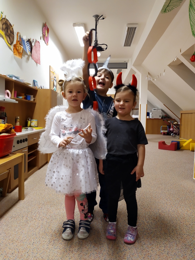 5.12. k nám přišla vzácná návštěva - Mikuláš se svou družinou. Některé děti byly statečné, u jiných se objevily slzičky.