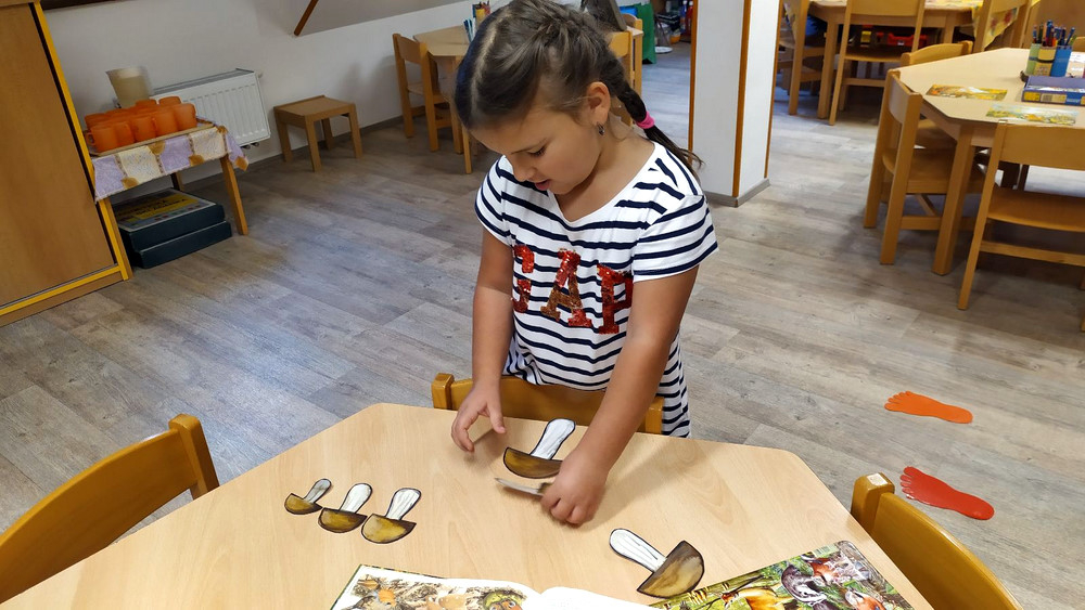 Na začátku měsíce se děti seznamovaly s pravidly třídy. Podílely se na jejich tvorbě a souhlas stvrdily svými školkovskými razítky. V druhé půlce září se děti seznamovaly s houbami. Dozvěděly se, jaké mají části, jak se některé houby jmenují a které můžou jíst. O Jablíčkových dnech si také upekly jablečný závin, na kterém si všichni moc pochutnali. ?