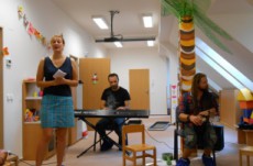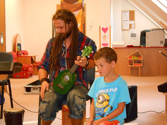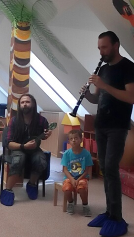 12.září jsme měli ve školce polskou návštěvu v podání dvou muzikantů s projektem Veselá kapela. Děti se vydaly s hudbou a tancem do pohádky Pocahontas. Většina dětí tuto pohádku neznala, některé ji pak doma zhlédly s rodiči. Hudební akce se všem dětem líbila, poznávaly i různé hudební nástroje.